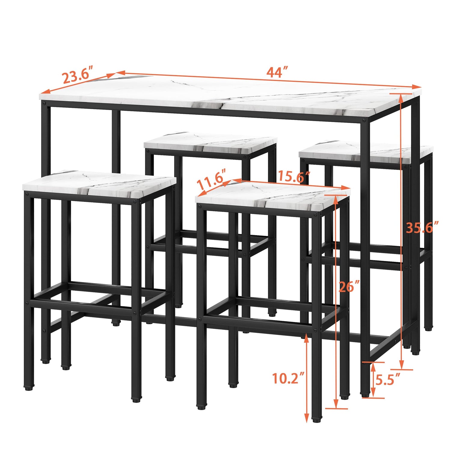 Yongchuang Modern 5 Piece Bar Table Set with White Faux Marble Top and 4 Backless Stools