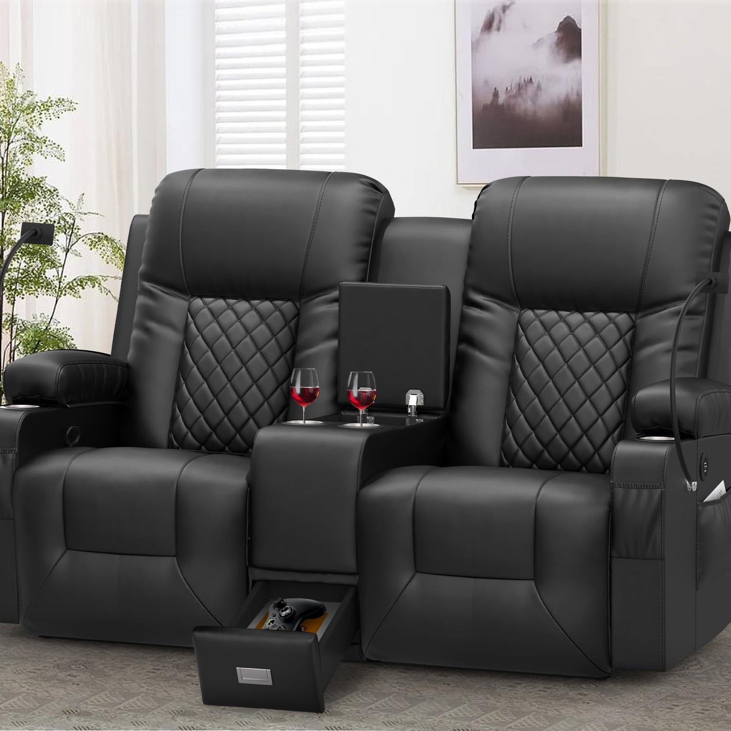 - 【Multi-Functional Storage Recliner】Our home theater seating has four cup holders so you can enjoy your favorite drink or popcorn with friends on movie night without worrying about spills. Two side pockets and a center console with storage boxes and delicate drawers, provide dedicated space for your essentials, keeping your living area organized and clutter-free. The convenient hideaway storage keeps everything within easy reach.