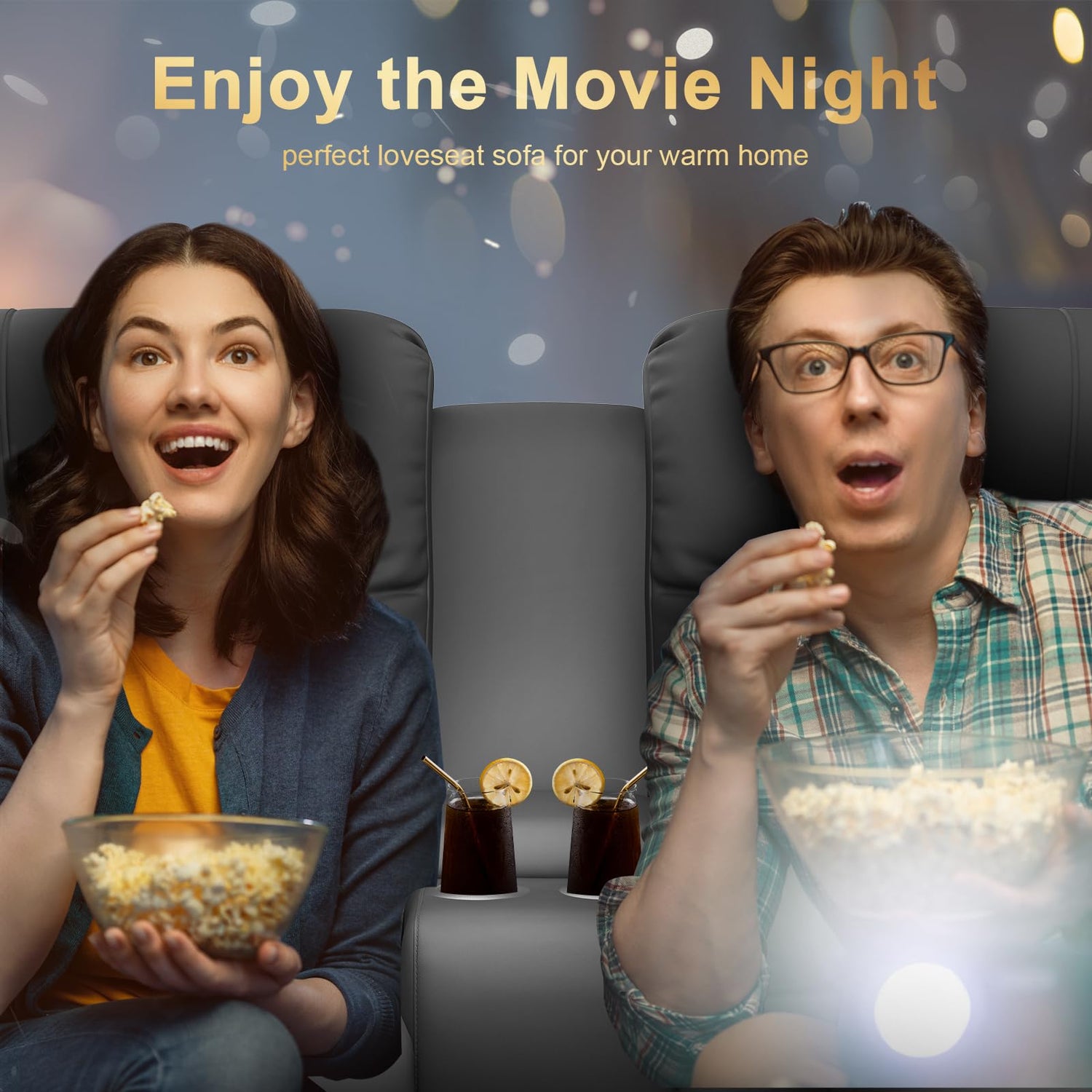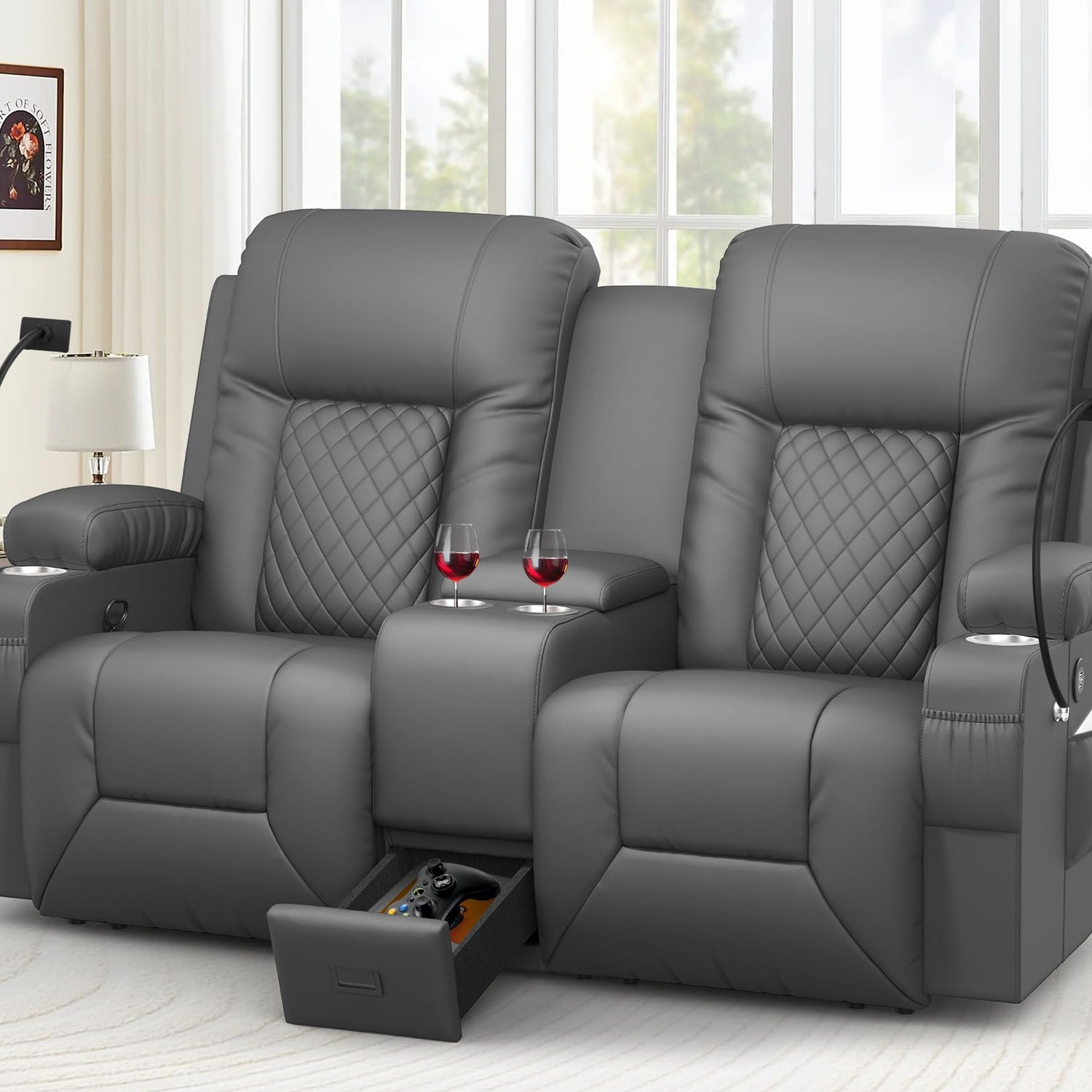 - Multi-Functional Storage Recliner - Our home theater seating has four cup holders so you can enjoy your favorite drink or popcorn with friends on movie night without worrying about spills. Two side pockets and a center console with storage boxes and delicate drawers, provide dedicated space for your essentials, keeping your living area organized and clutter-free. The convenient hideaway storage keeps everything within easy reach.