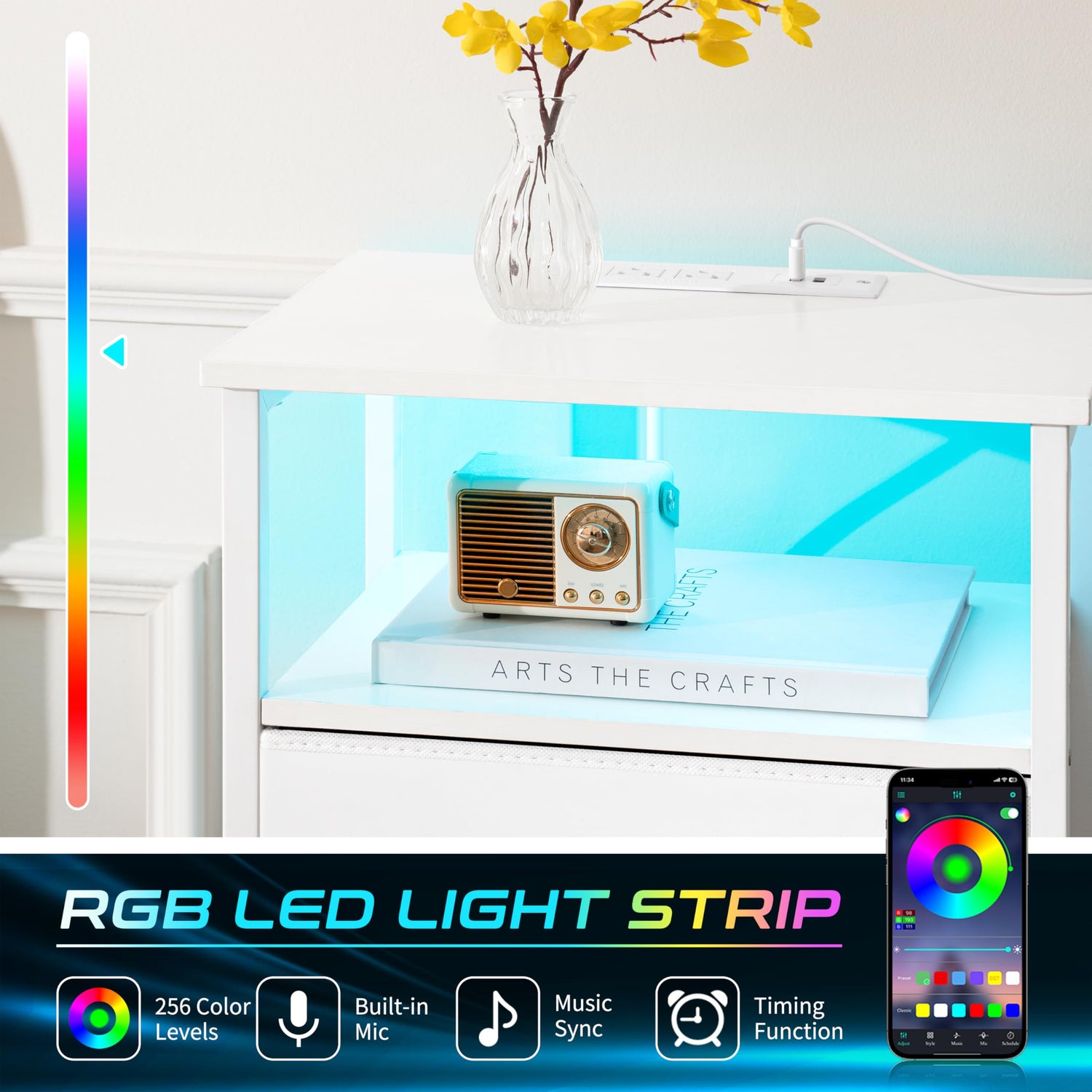 - Easy Assembly&Nice Service: Easy as pie to assemble the LED nightstand! Our white nightstand has everything you need: a clear manual, labeled parts, tools, and a QR code for an assembly video. The video is also available on the product page. Enjoy a 1-year after-sale service and quick 12-hour customer response service.