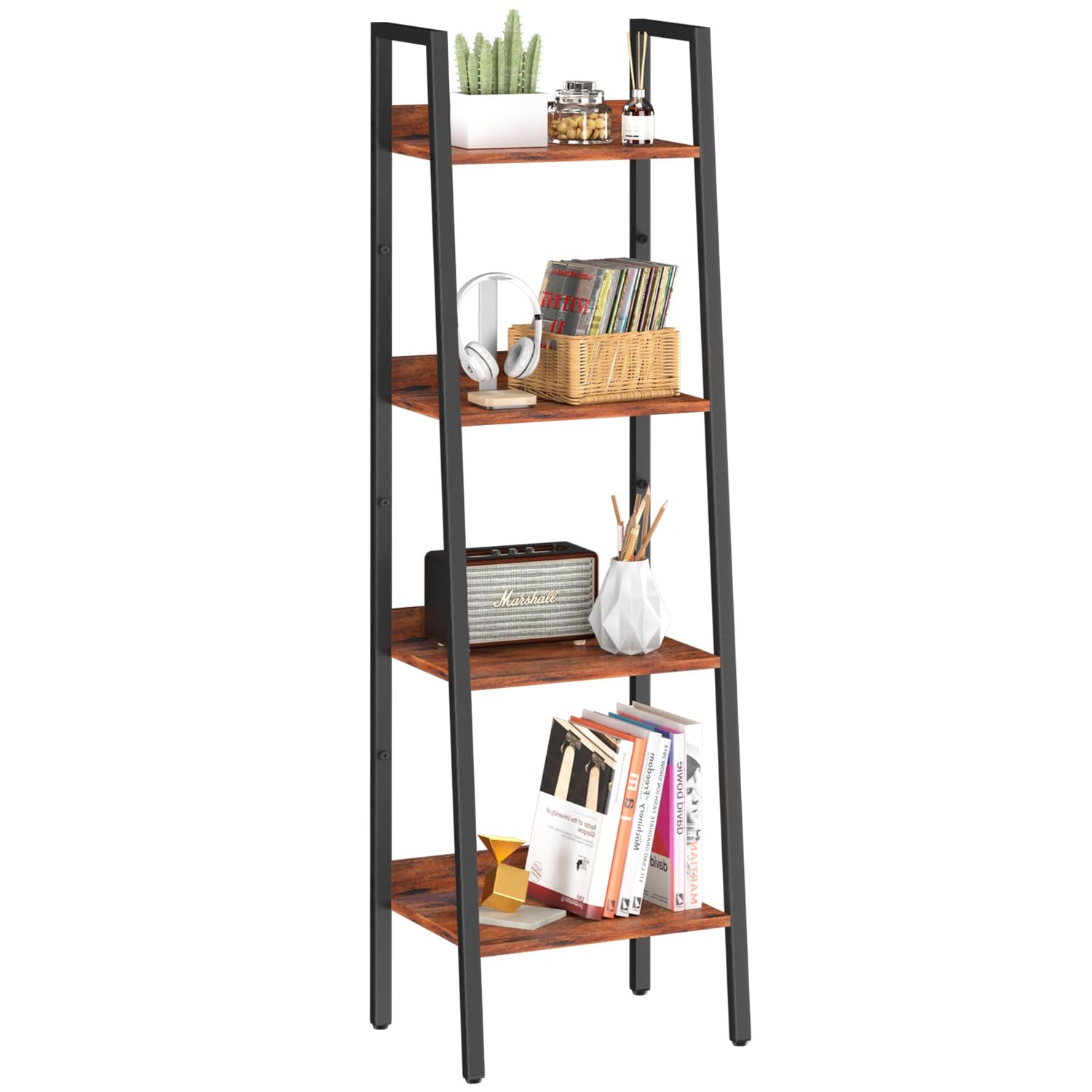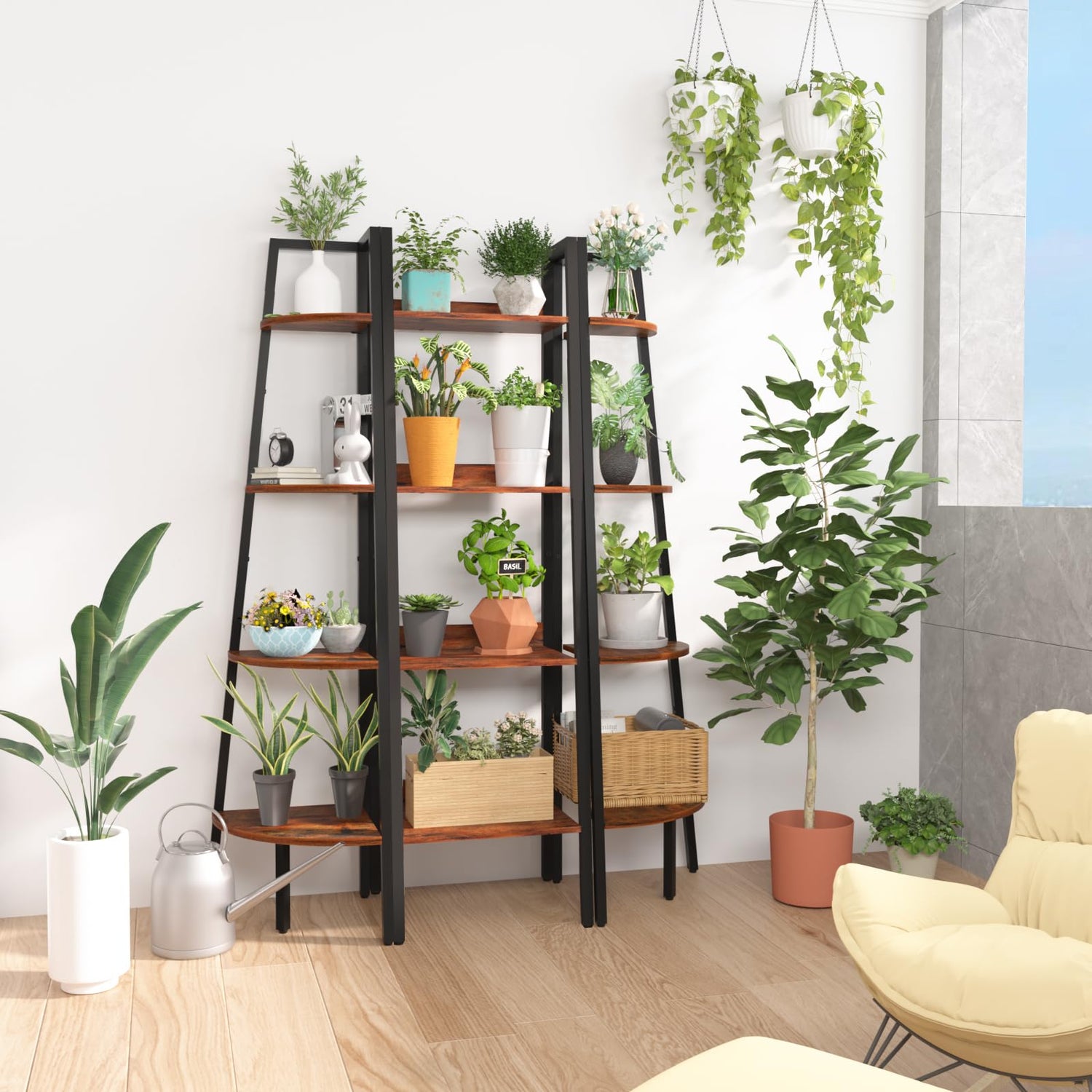Yoobure Ladder Shelf, 4 Tier Tall Ladder Bookshelf Corner Shelf, Industrial Book Shelf Ladder Bookcase Narrow, Standing Storage Shelves Display Shelf for Bedroom Living Room Office Kitchen Bathroom