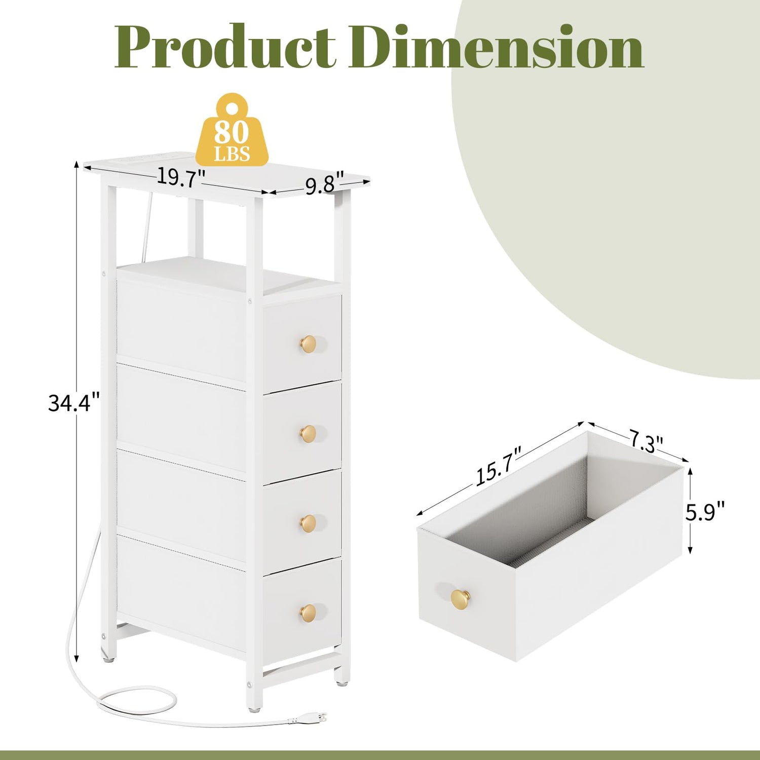 - Efficient Storage & Classify: Meet your new storage hero—Yoobure narrow dresser for closet. The tall dressers for bedroom feature 4 storage drawers for sorting and storing your daily essentials like cosmetics, towels, socks, and more while keeping clutter hidden. This white dresser for bedroom also includes an open shelf and tabletop, ideal for easy access to books, headphones, iPads, plants, etc.