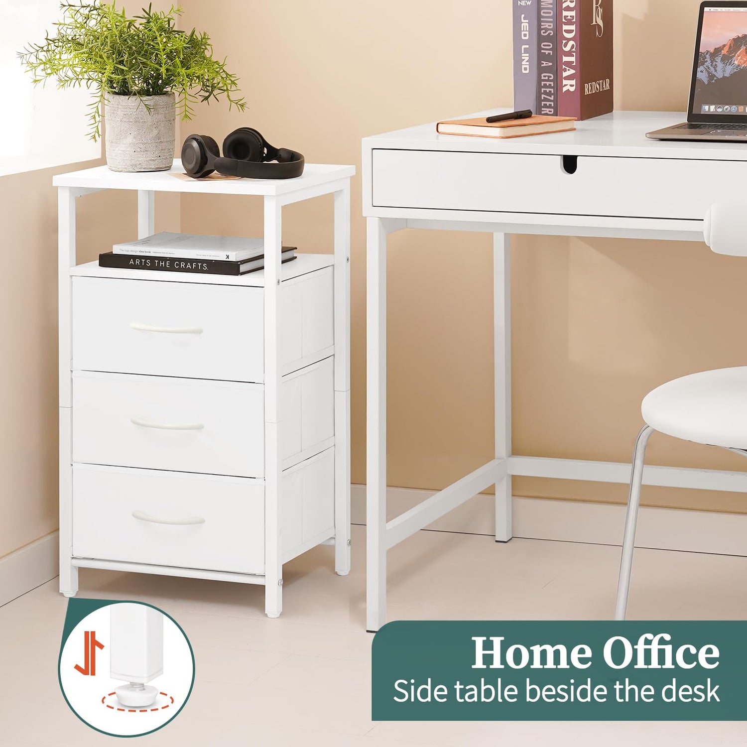 - Spacious Storage Space: Featured with 5 storage parts, the small table can keep your areas clutter-free. 3 fabric storage drawers provide generous space to organize odds and ends such as remote, keys or glasses. The open shelf and tabletop are ideal for books, clocks or decorative items.