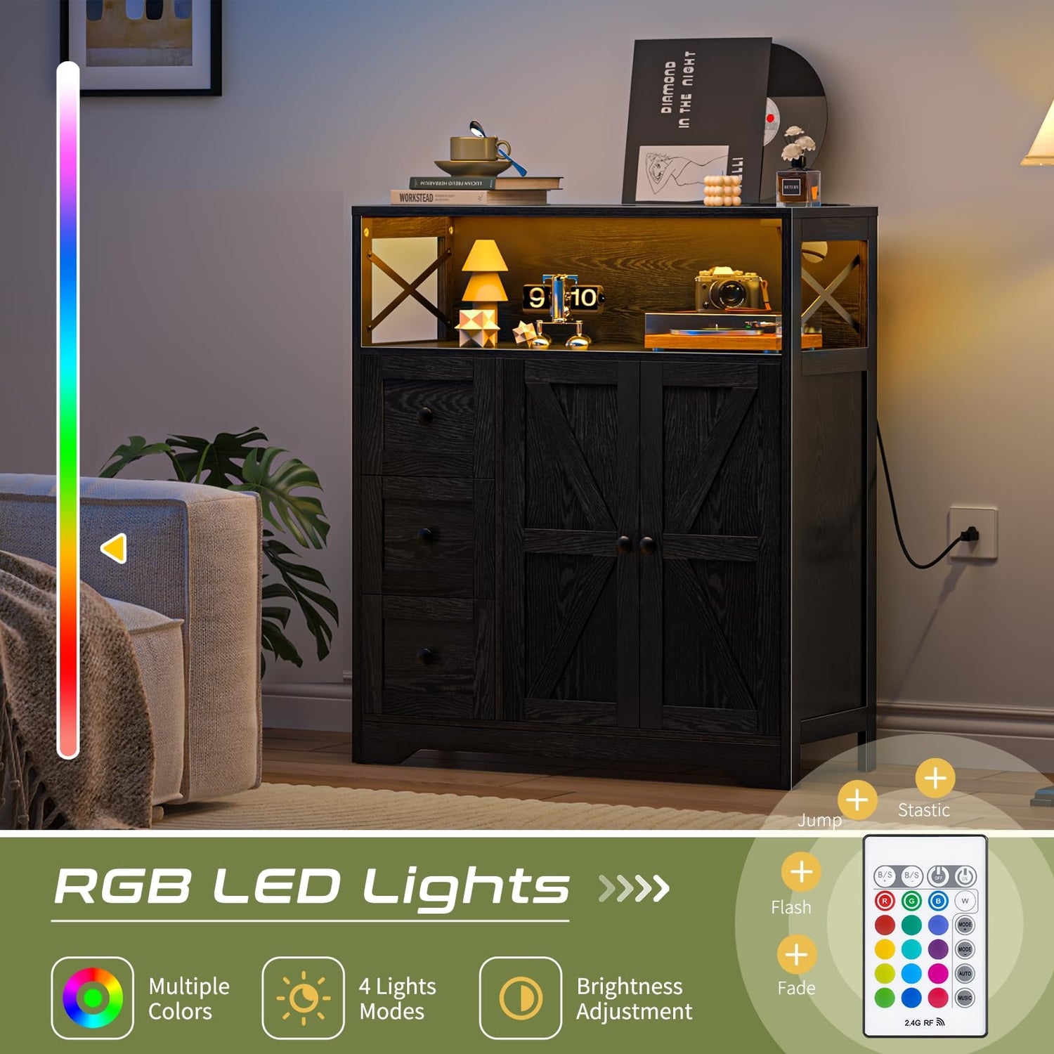 - 【Attractive LED Accent Cabinet】Our kitchen cabinets have smart strips with a time function so they can turn on/off automatically. Also, they can switch to various colors, 7 static and 22 dynamic modes like jump and flash to create unique vibes. Moreover, they have a music sync function to bring more vigor to your home.
