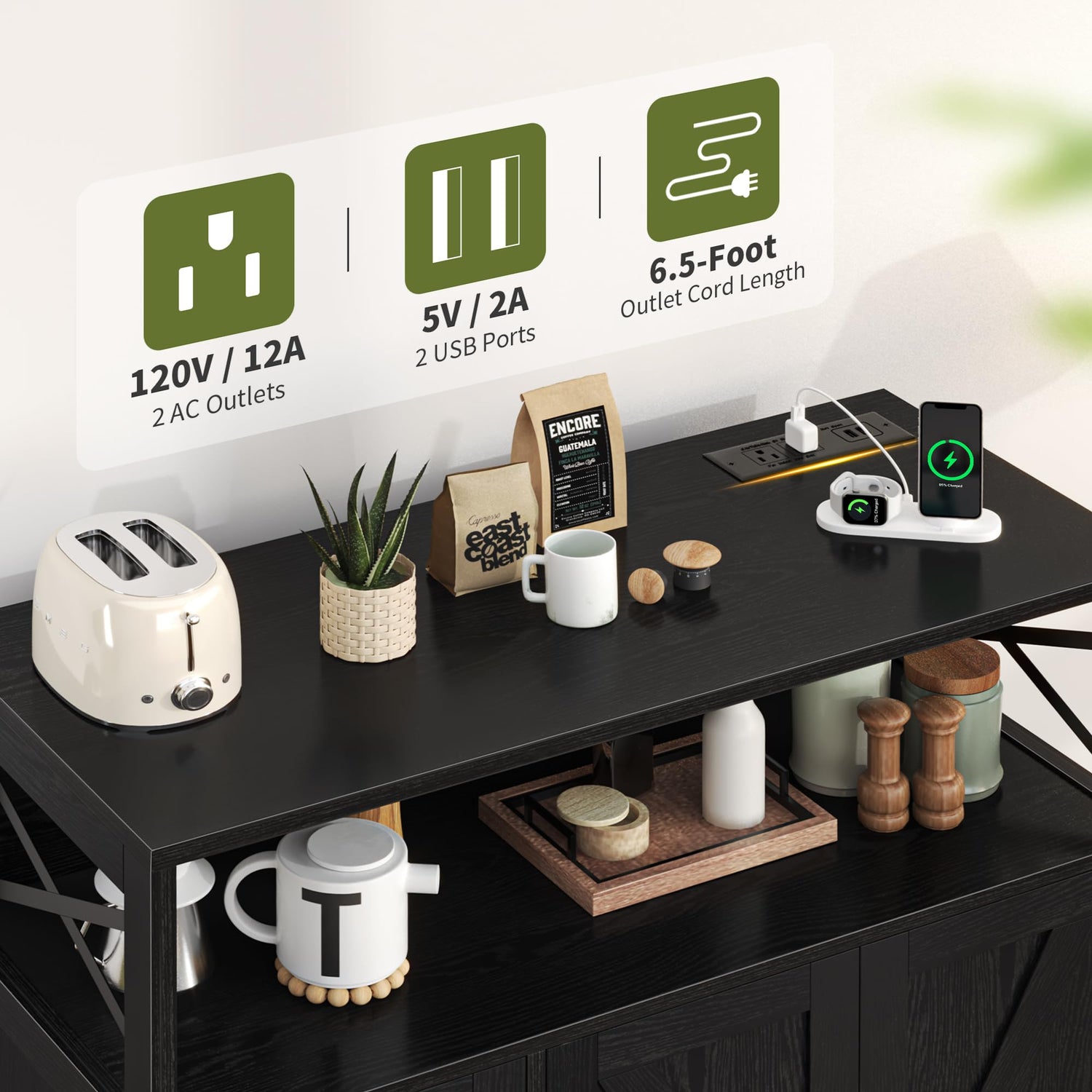 - 【Handy Charging】It is time to upgrade your buffet cabinet with storage! Yoobure kitchen storage cabinets add sockets with 2 power outlets and 2 USB ports, which enables you to charge multiple devices like phone, iPad and kitchen appliances simultaneously. Besides, they own 6.56 ft charging cords. No need to be limited by the wall socket.