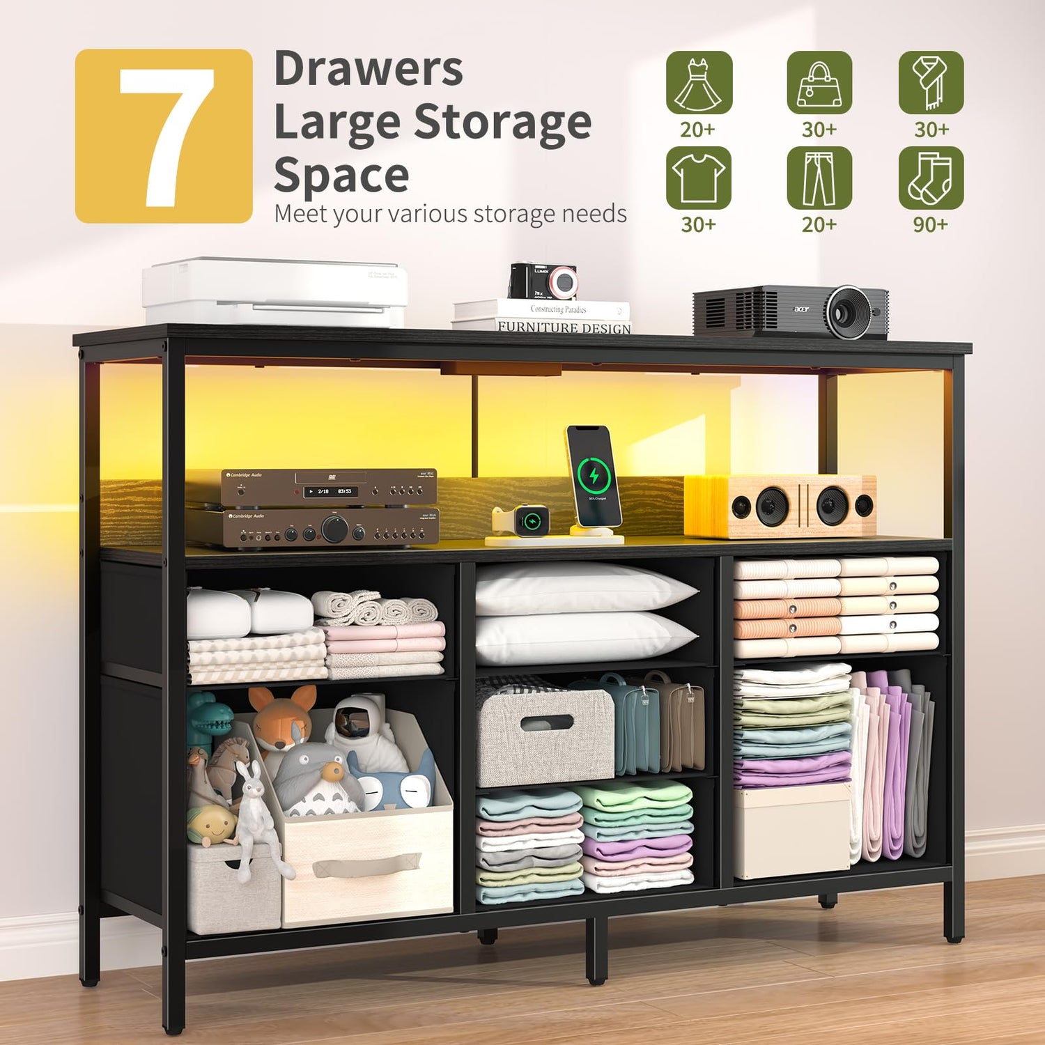 Yoobure TV Stand Dresser for Bedroom, 7 Fabric Drawers Entertainment Center, LED Dressers with Power Outlets, TV Stands for Living Room with Storage Shelf, TV Console Entertainment Stand up to 50" TV