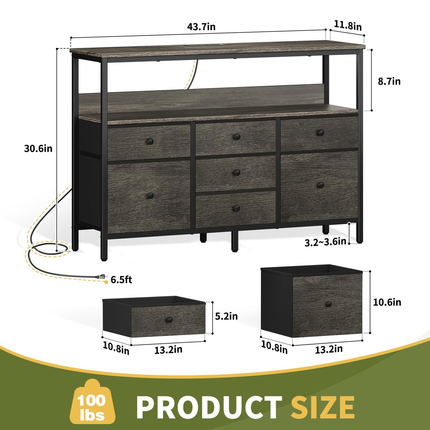 - 【Ample Storage/Display Space】 The TV stand with storage has a roomy 43.7"L x 11.8"W tabletop to house TVs up to 50" easily. 2 different sizes 7 fabric drawers and an open shelf with a backing panel provide ample classified storage for CDs, decorative items, T-shirts, blankets, toys, etc, to keep your room organized. Yoobure small dresser will be an awesome home companion
