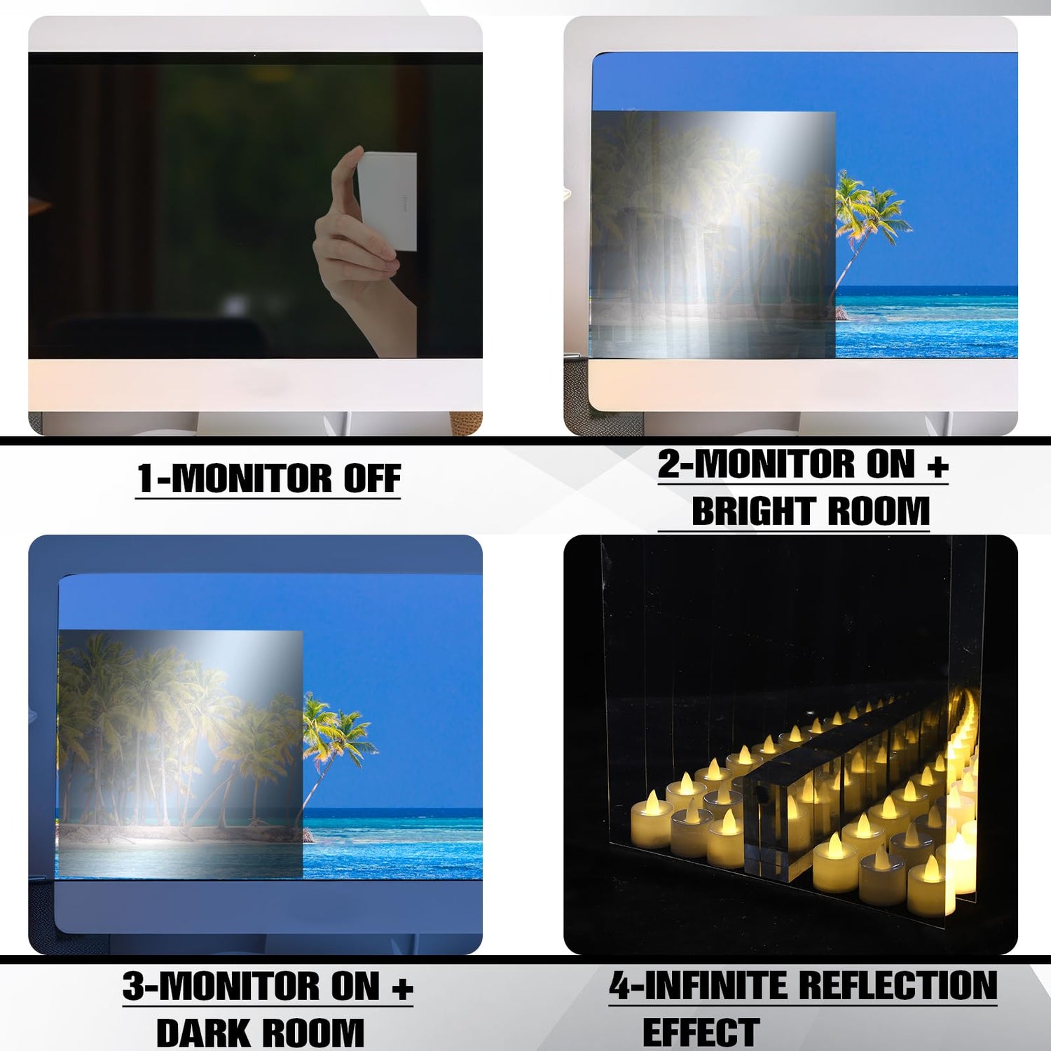 - Package Contents: the package contains 3 pieces of acrylic two way mirror glass, measuring about 12 x 12 x 0.04 inches, transparency 30%, which can be applied to various projects such as infinity mirror magic mirror, and sufficient quantity allows you to make bold innovations, attempts and replacements