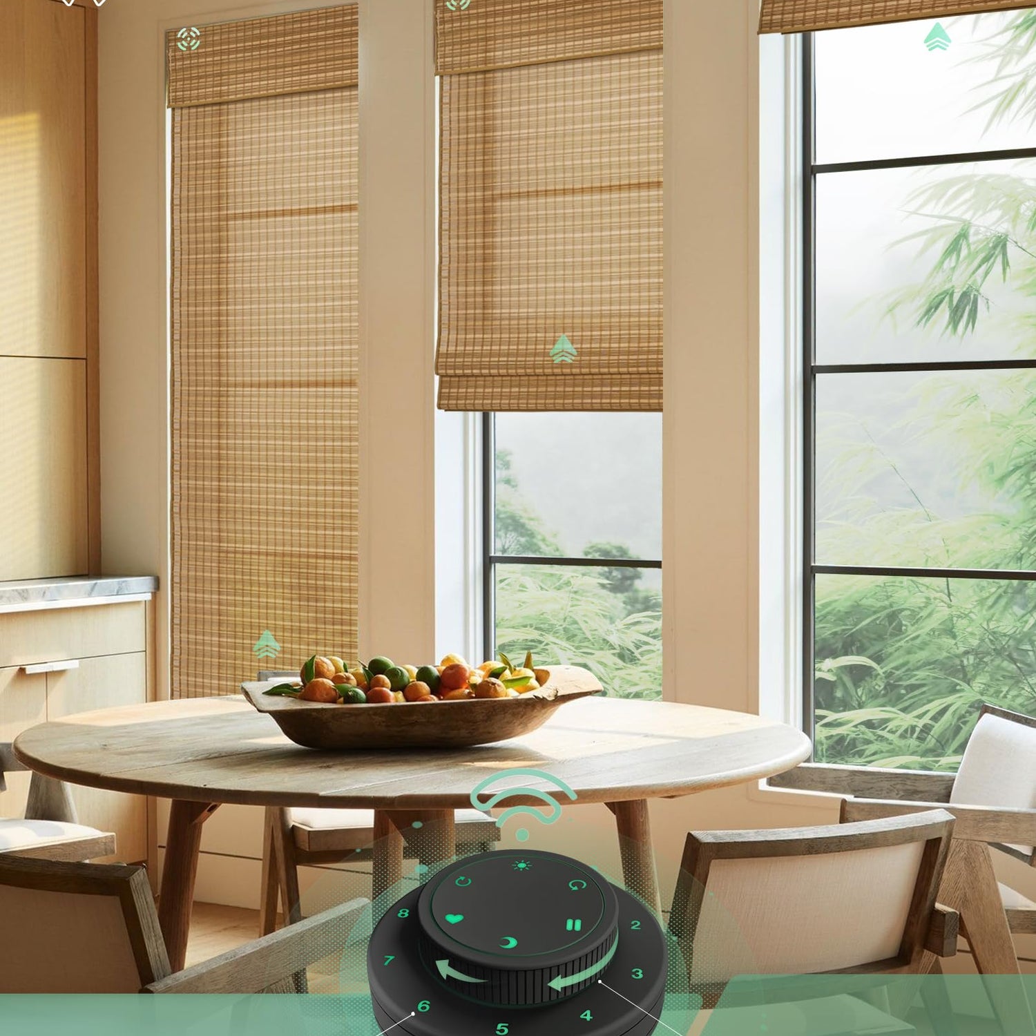 - 【Made of 100% Natural Bamboo】Crafted from 100% natural bamboo, Yoolax motorized bamboo roman shades are handmade, ensuring each shade is unique. Their classic roman shade style delicately filters light into the room, creating a cozy and inviting atmosphere indoors.