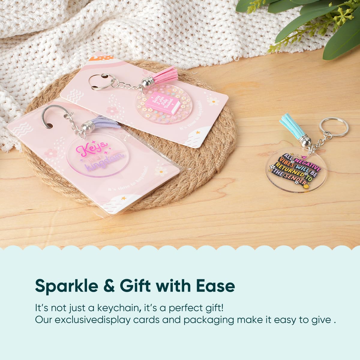 - 【Rich Accessories】 Double-sided UV dtf stickers, waterproof and colorfast, easy to stick. The keychain is made of strong and sturdy iron alloy,And silver-toned nickel plating makes them shiny and smooth on the surface and edge, lightweight and durable, the tassel is colorful, with a beautiful display card and keychain packing bag.The product accessories are complete, perfect for your daily DIY craft projects and artwork needs