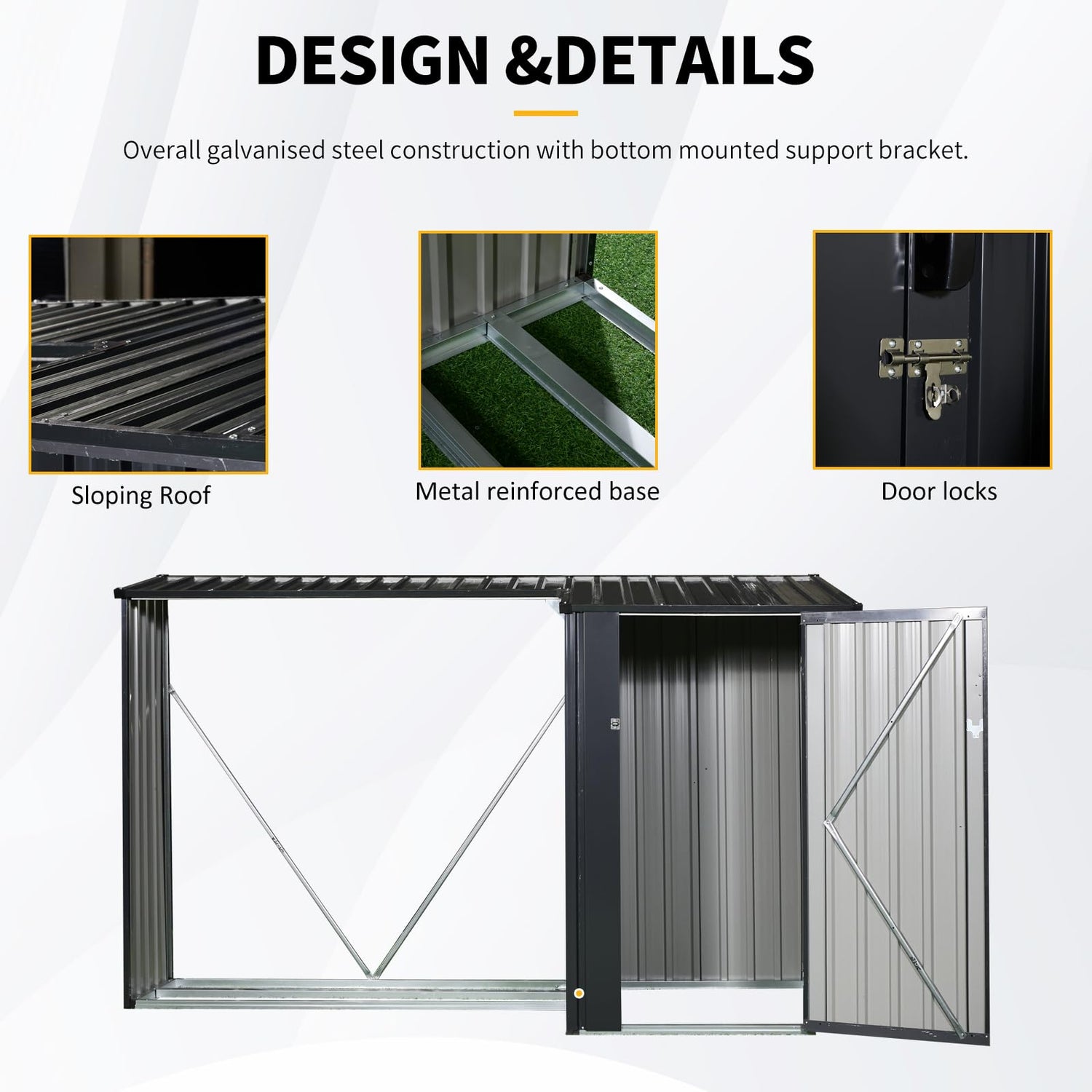 YOPTO 106.5" Outdoor Steel Firewood Rack Metal Storage Shed with Door and Reinforced Base,Multi-Functional 2 in 1 Waterproof Cabinet W/Roof,for Equipment Machines,Black