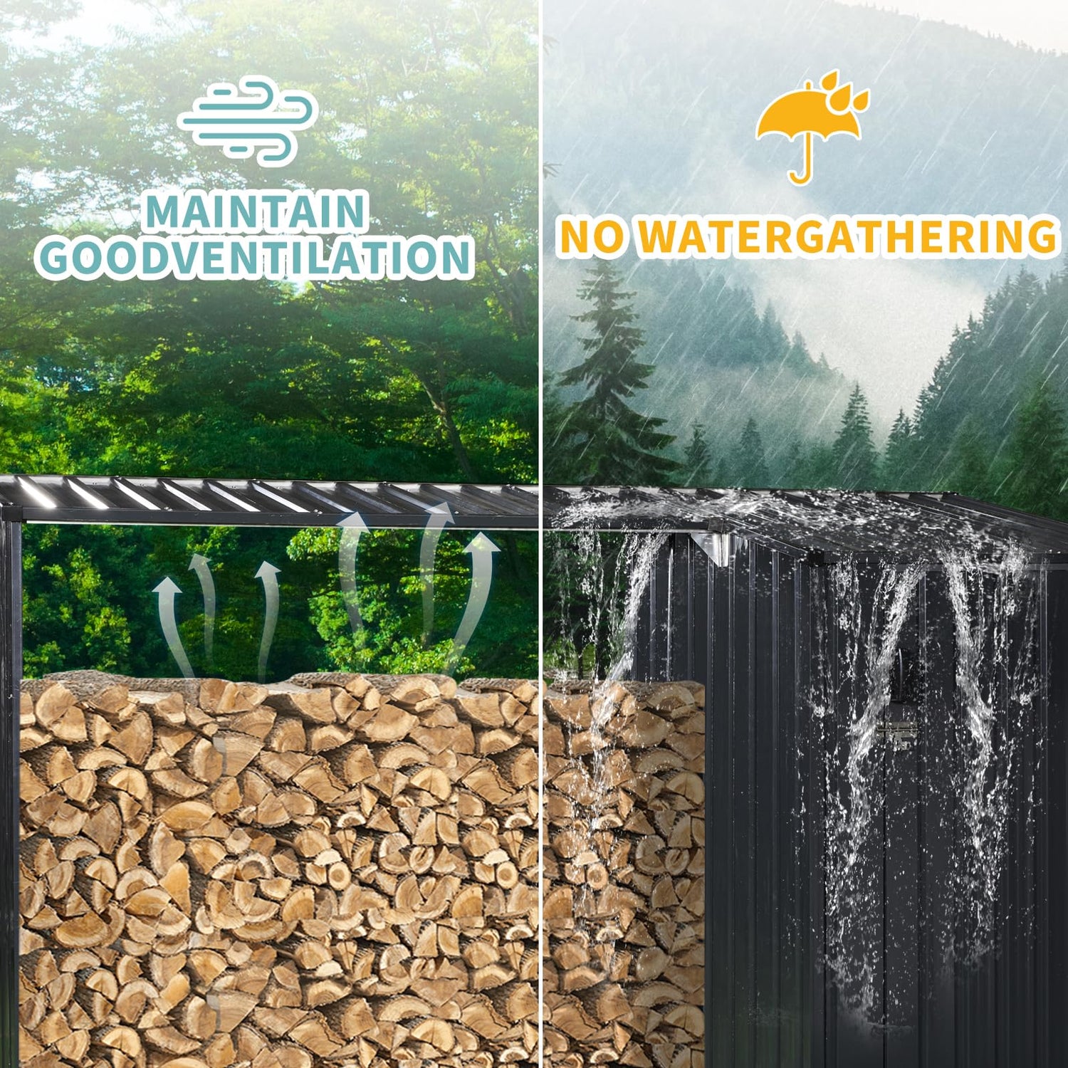 - 【Neat Yard Organization】:Helps maintain a tidy outdoor space by concealing firewood stacks and storing bulky items like lawn mowers or tools The functional design blends practicality with clean aesthetics for any backyard setting