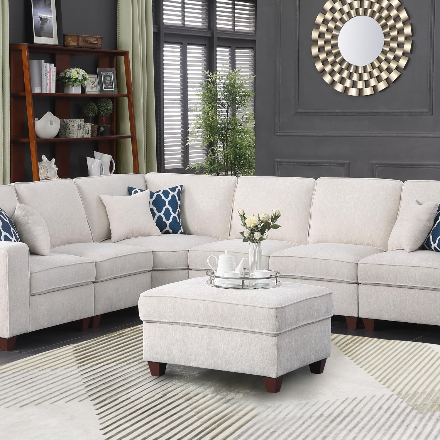 YOPTO 116" Convertible Sectional Couch with Movable Ottoman and 6 Throw Pillows,Chenille Upholstered Comfy Sofa 7 Seater,L-Shaped,Free Combination,Easy Assembly for Living Room,Apartment,Office,Beige