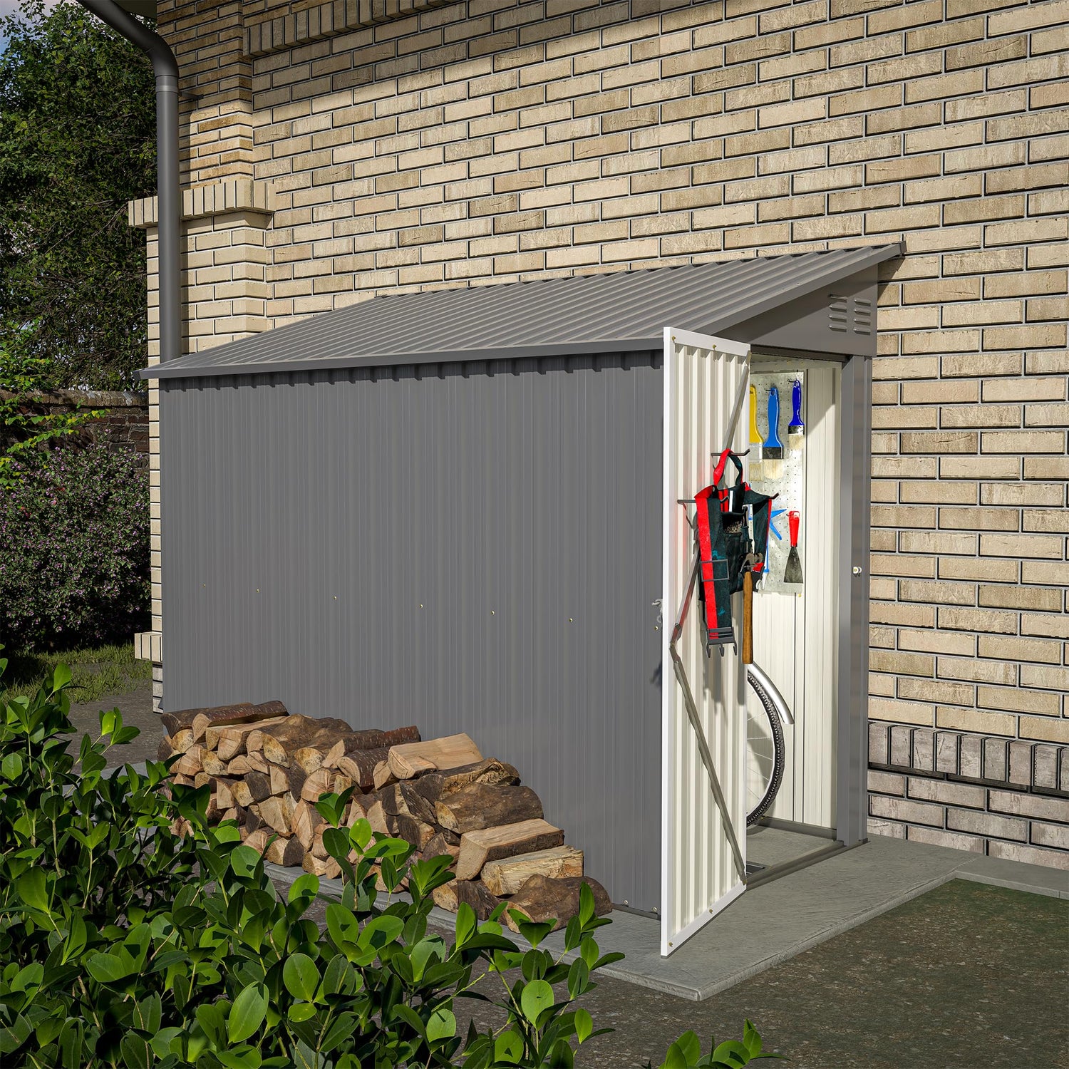 YOPTO 4×8 FT Lean to Metal Shed,Outdoor Heavy-Duty Storage Shed with Floor Base,All Weather Waterproof Garden Tool House W/Lockable Door&2 Air Vents,Reversible Door Design,for Backyard,Patio,Lawn,Gray