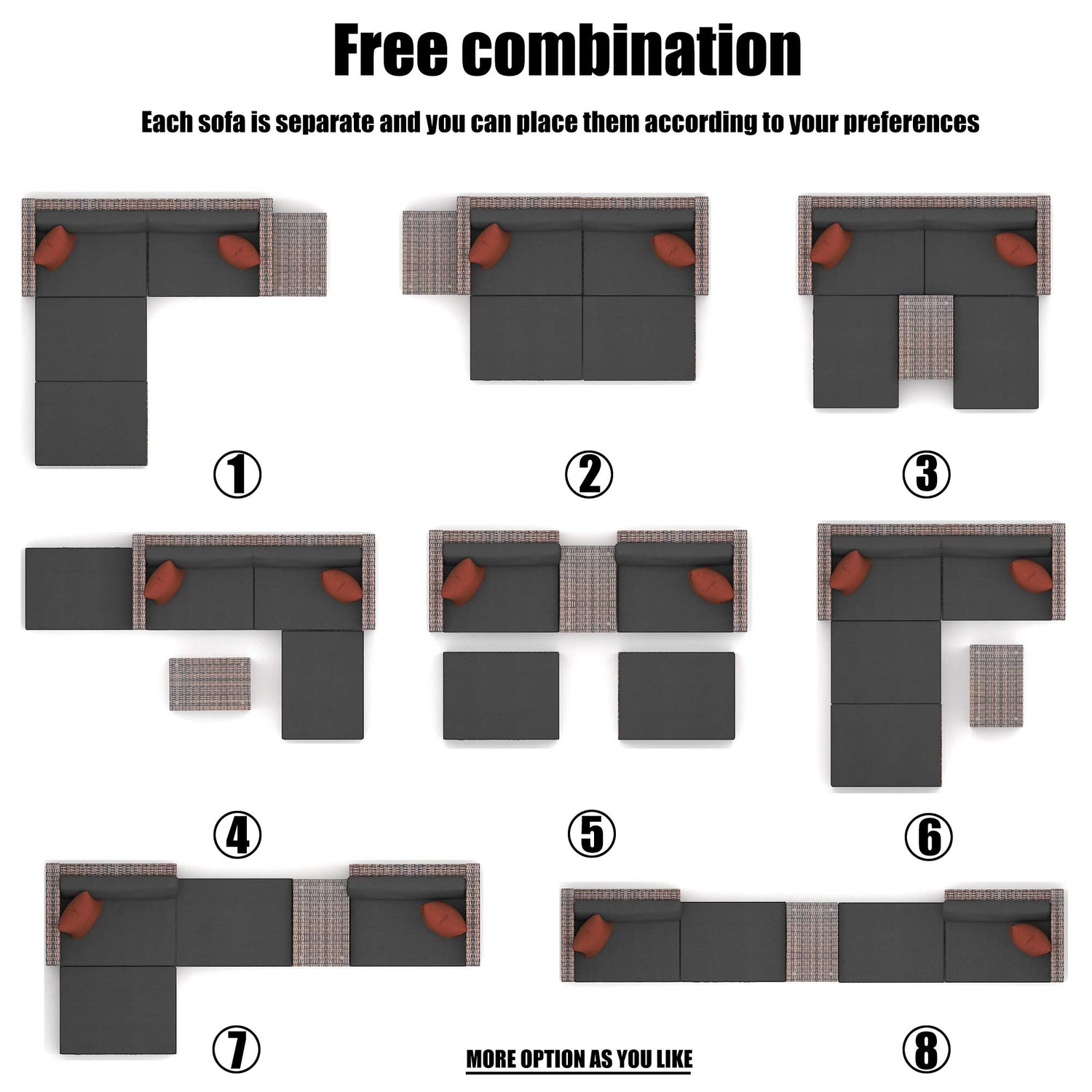 - [VERSATILE DIY COMBINATION] YOPTO 5 Pieces Outdoor Wicker Sectional Sofa Set is designed for flexible configurations, allowing you to arrange it in different layouts based on your available space. Whether you want a cozy Patio Sofa Bed for afternoon naps or a conversational Patio Conversation Set Sectional Couch for social gatherings, this set adapts effortlessly to porches, gardens, and lawns, making it the perfect addition to any outdoor setting.