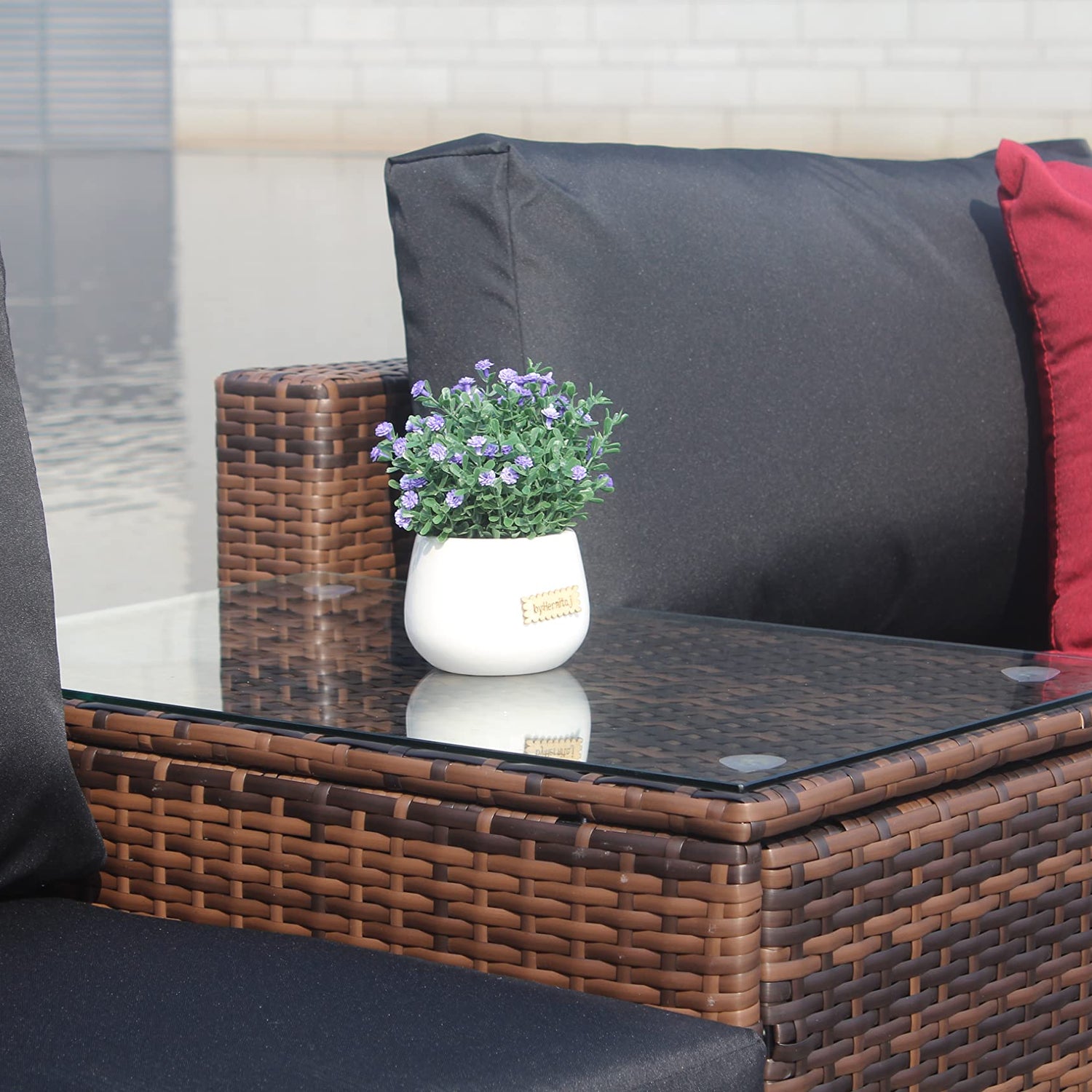 - [STYLISH & FUNCTIONAL DESIGN] YOPTO Patio Conversation Set Sectional Couch includes two ottomans, a spacious coffee table, and a Patio Sofa Bed setup, offering multiple seating and lounging options. The modern wicker design complements any outdoor décor, while the included pillows and protective cover keep your 5 Pieces Outdoor Wicker Sectional Sofa Set looking pristine. Perfect for backyards, terraces, and poolside areas, this set is both practical and elegant.