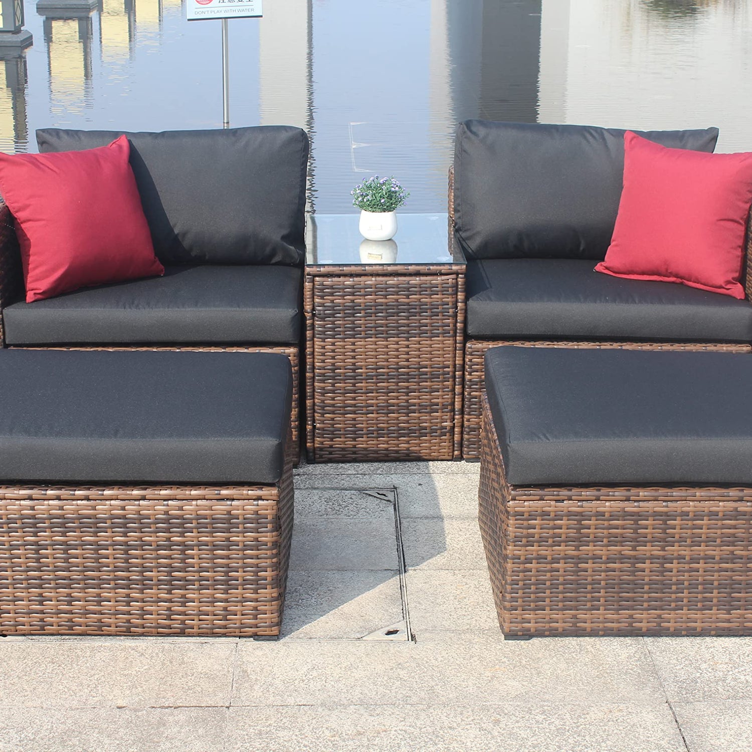 Details: Product Name: YOPTO 5 Pieces Outdoor Wicker Sectional Sofa Set with 2 Ottomans & Coffee Table,Patio Conversation Set Sectional Couch W/Cushions,Pillows & Protection Cover,Patio Sofa Bed for Porch,Garden,Lawns