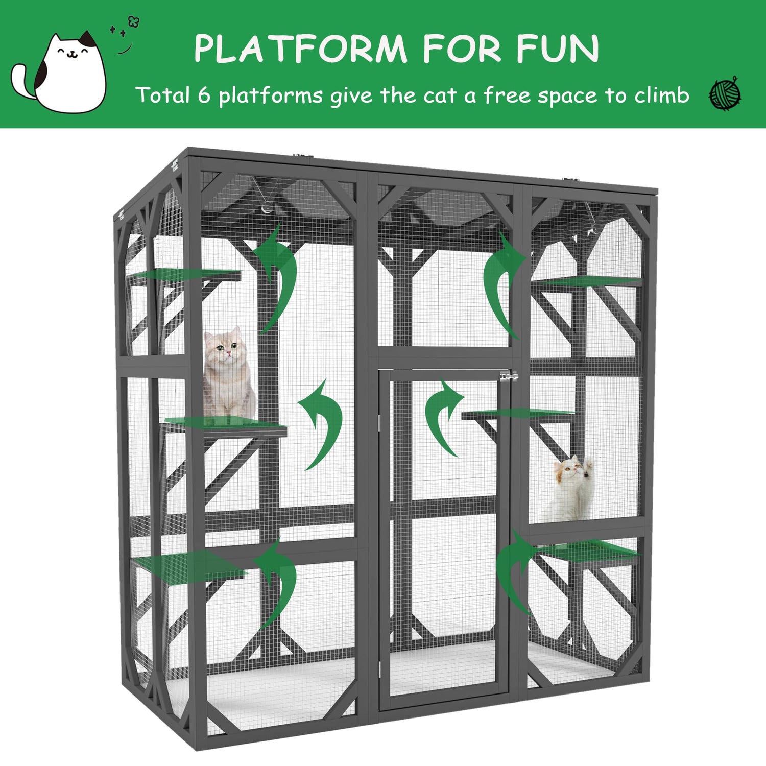 - 【Satisfy Your Cat's Natural Instincts】: With six spacious platforms, the Catio cat enclosure fosters your kitty's love for climbing and lounging. This multi-level design encourages active play and rest, ensuring your feline friend stays happy and healthy.