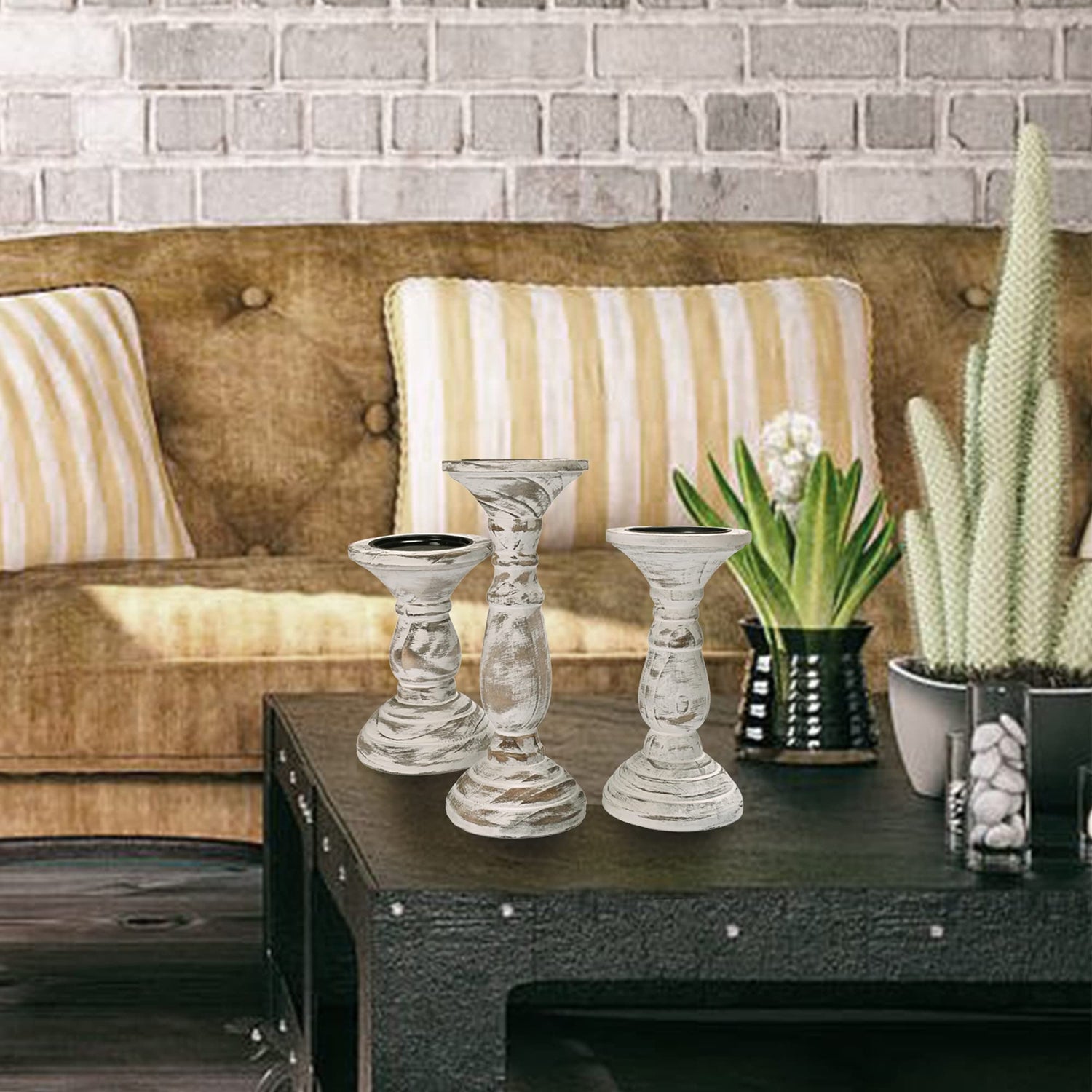 Yorkmills Pillar Candle Holder Set of 3, Farmhouse Decor Living Room Tall Candle Holders for Pillar Candles, Wood Candle Holders for Table Centerpieces White Home Decor Kitchen Dining Room Table Decor