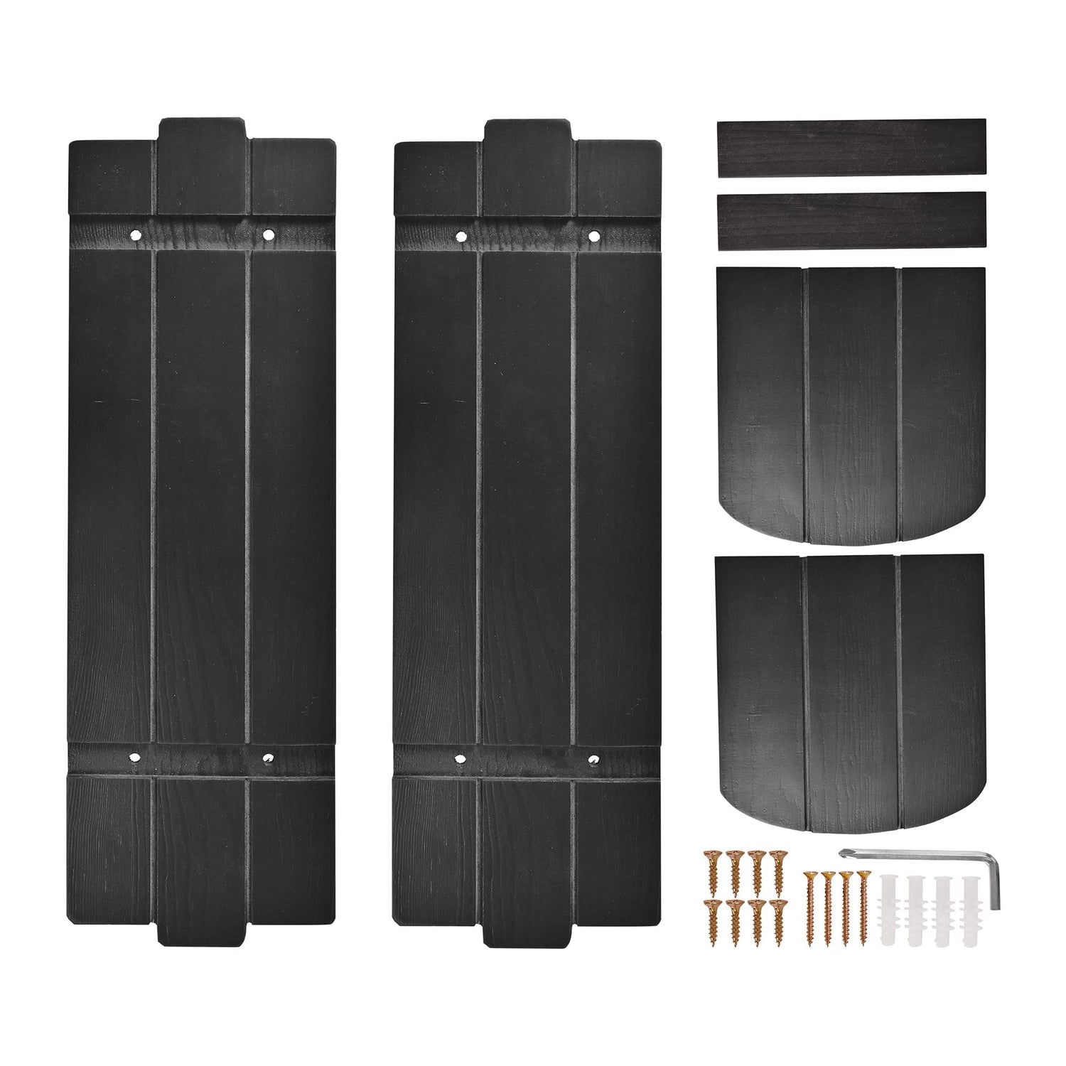Details: Features: The wall sconces set of two are made of natural wood and covered with classic black paint. The black woods in timeless style look fresh and natural and would blend into any room in your home.Specification: Material: Solid Wood Color: Black Dimension: 15" x 5" Package Include: Candle Sconces Wall Decor Set of 2 Screws Accessories