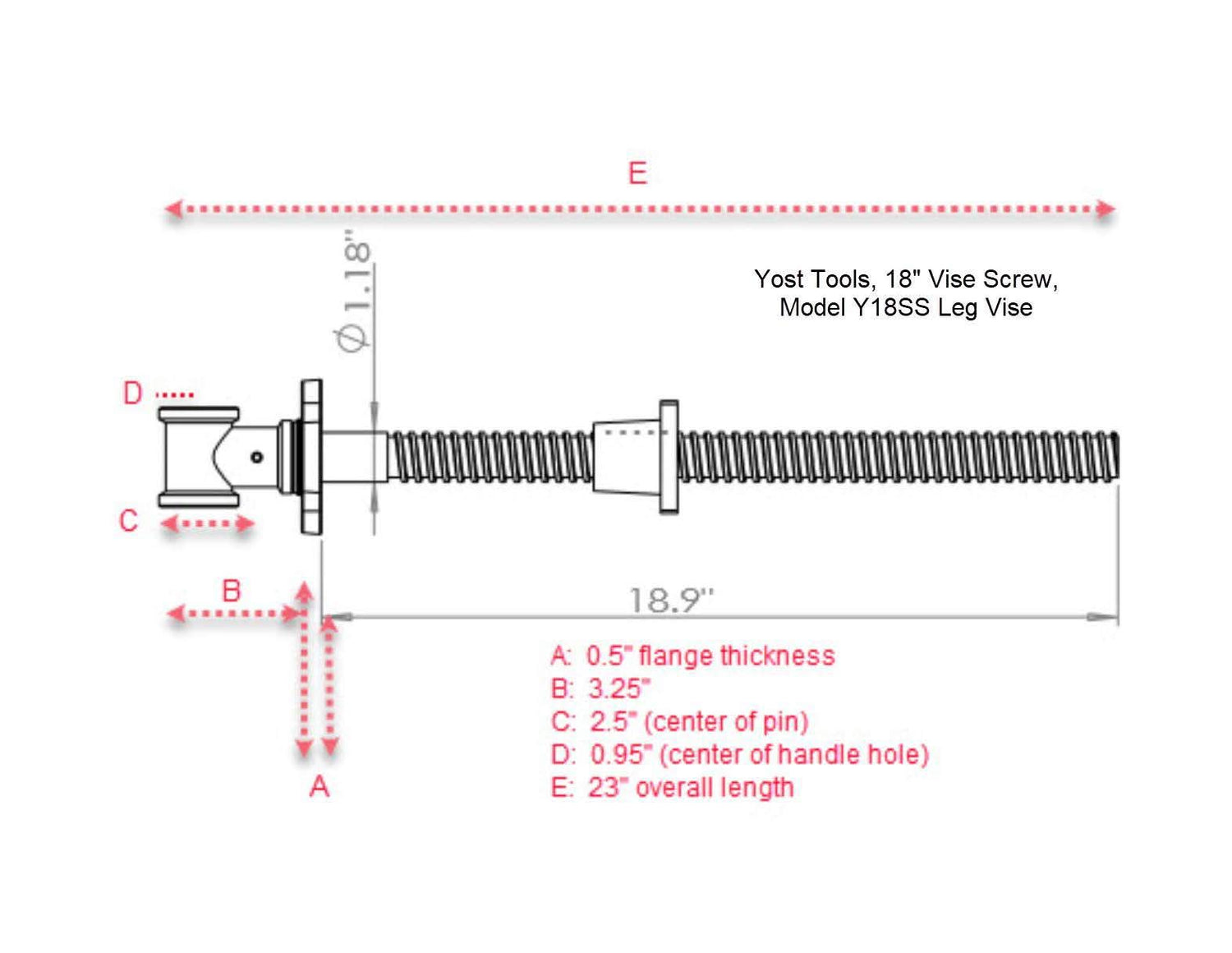 • DIY VISE SCREW: The Yost Vises Y18SS Vise Screw is the perfect tool if you like making your own customized bench vise. Has an 18-inch solid steel main screw that gives you a wide range of jaw openings and a tough cast iron body construction.