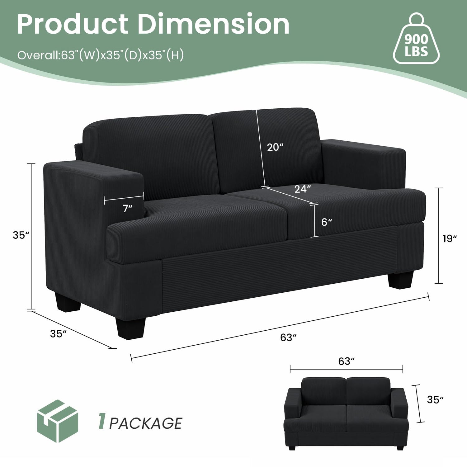 YOUDENOVA 63” Corduroy Loveseat Sofa Couch for Living Room, Small Couch with Deep Seat for Bedroom, Comfy Could Loveseat for Small Living Room, Black Corduroy