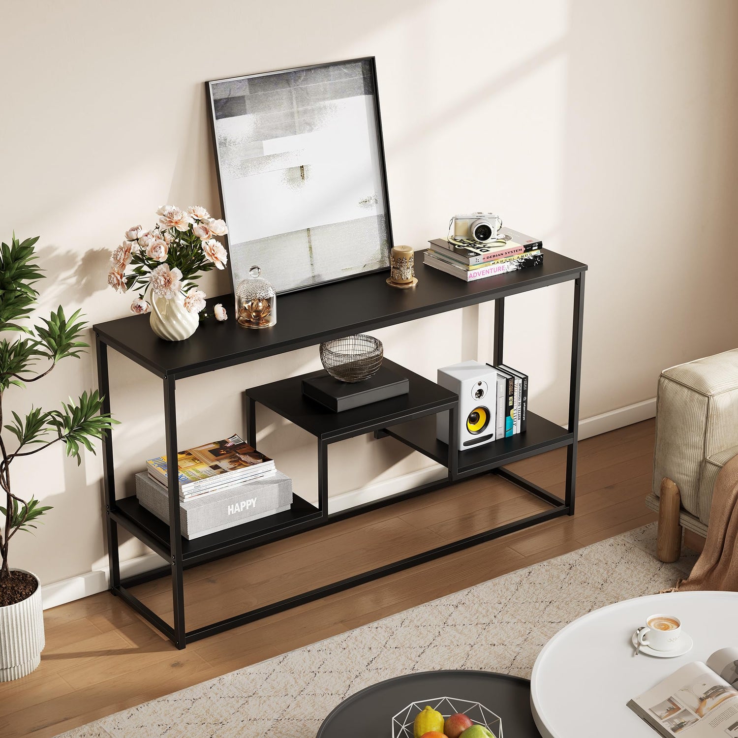 YOUDENOVA TV Stand for TVs up to 65 Inch, TV Console Table with 3-Tier Open Storage Shelves, Modern Industrial Entertainment Center for Living Room, Bedroom, Black