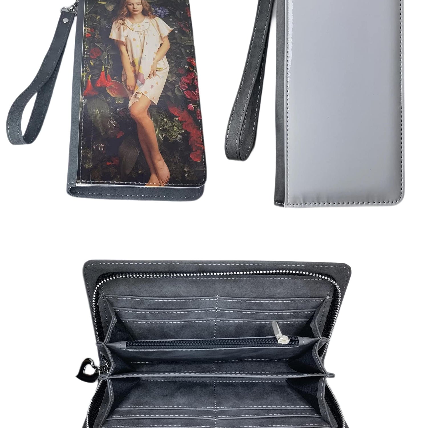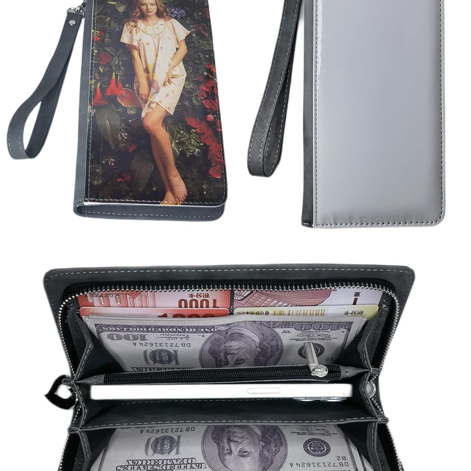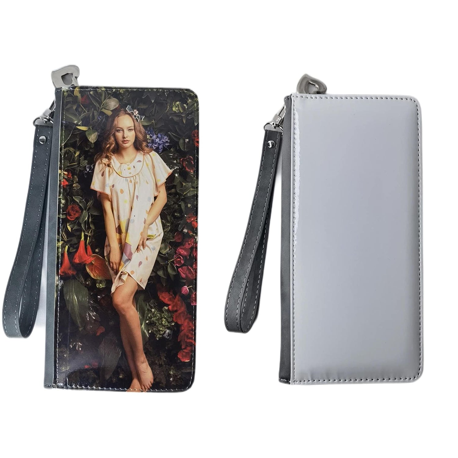 Youkang Sublimation Wallet Women's Zipper Card Holder Storage Bag Women's Travel Clutch Wristband DIY Craft (Grey)