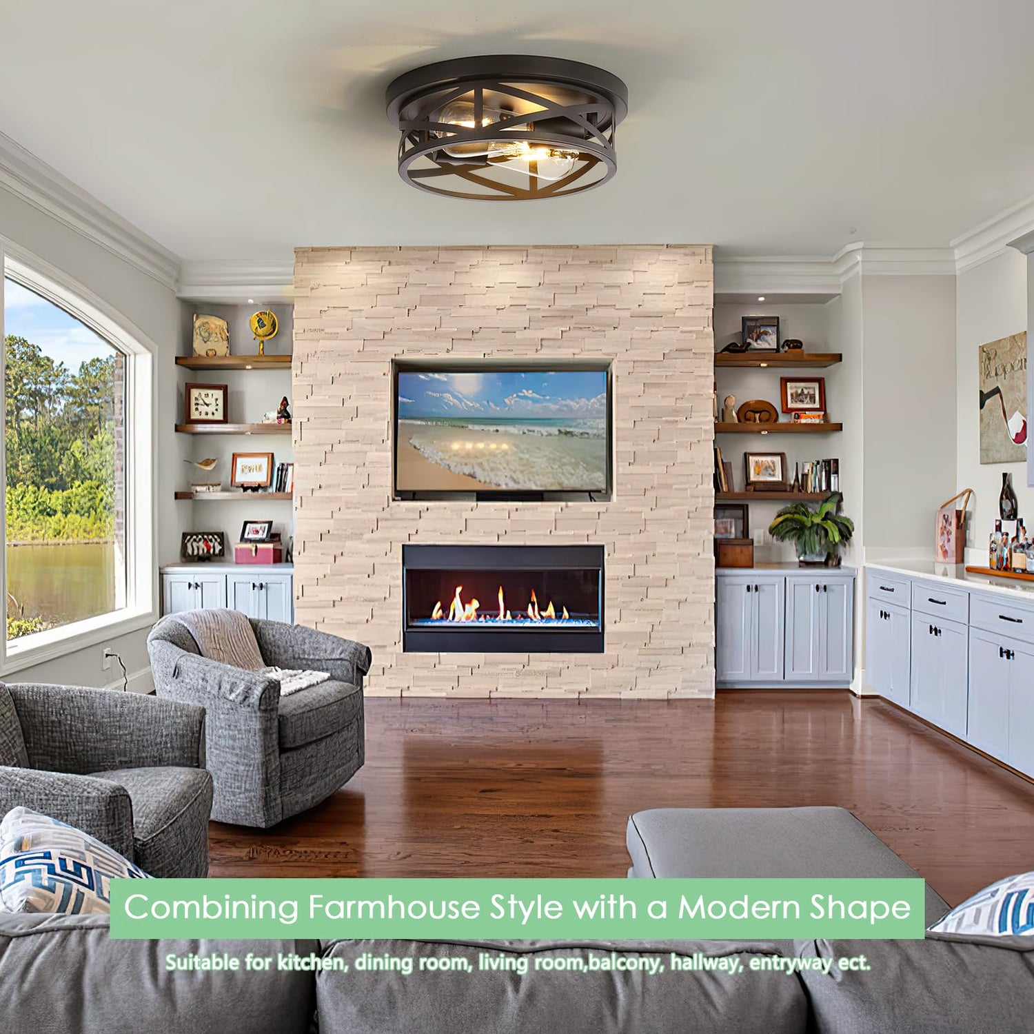 - Chic Cage Farmhouse Design: Elevate your interior décor with these vintage industrial farmhouse close to ceiling lights. Featuring metal construction and sleek black finishes, they seamlessly blend rustic charm with modern elegance