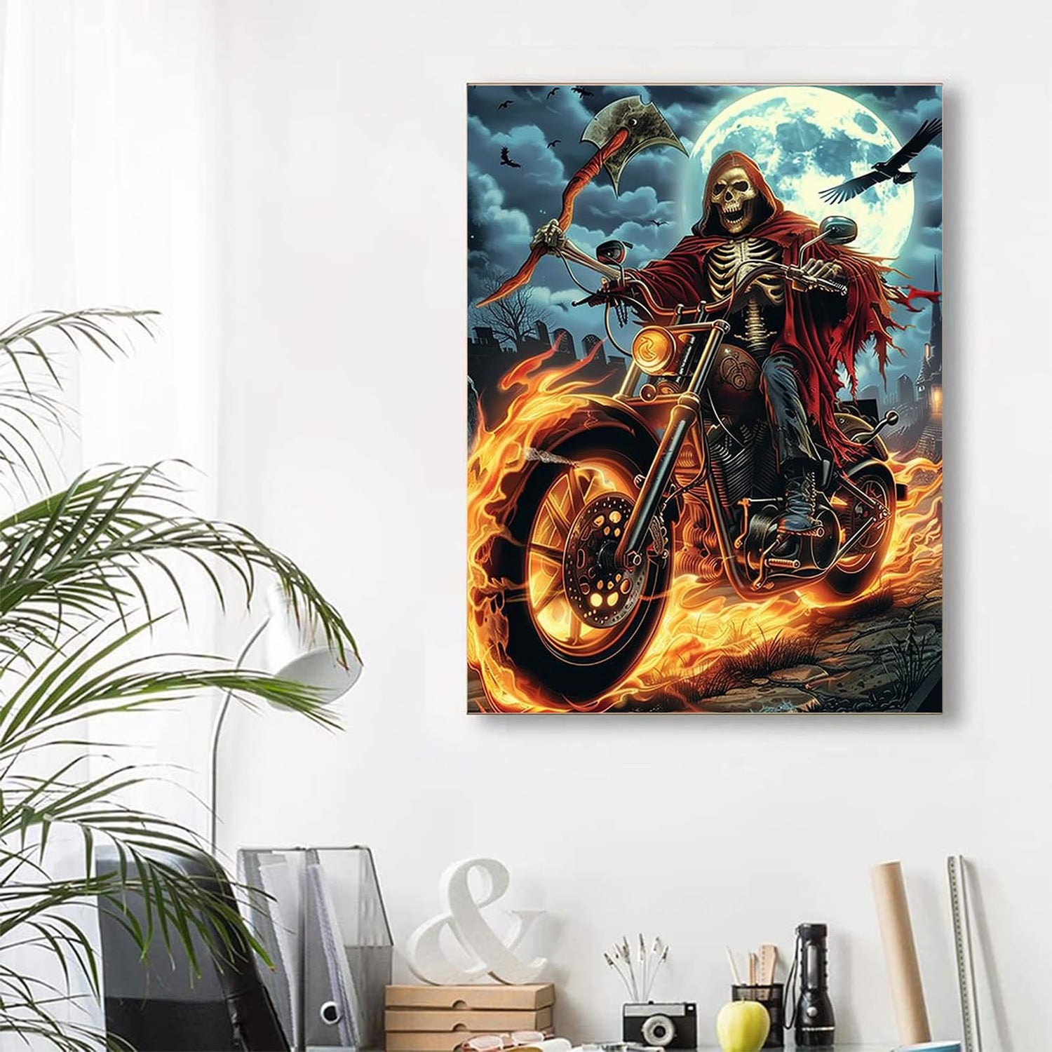 YOUSHIHA Motorcycle Skeleton Man Diamond Painting Kits for Adults,Vehicle Diamond Painting Art Kit for Adult,5D Gem Diamond Art Painting for Relatives and Friends Home Wall Decor Gifts 12x16 Inch