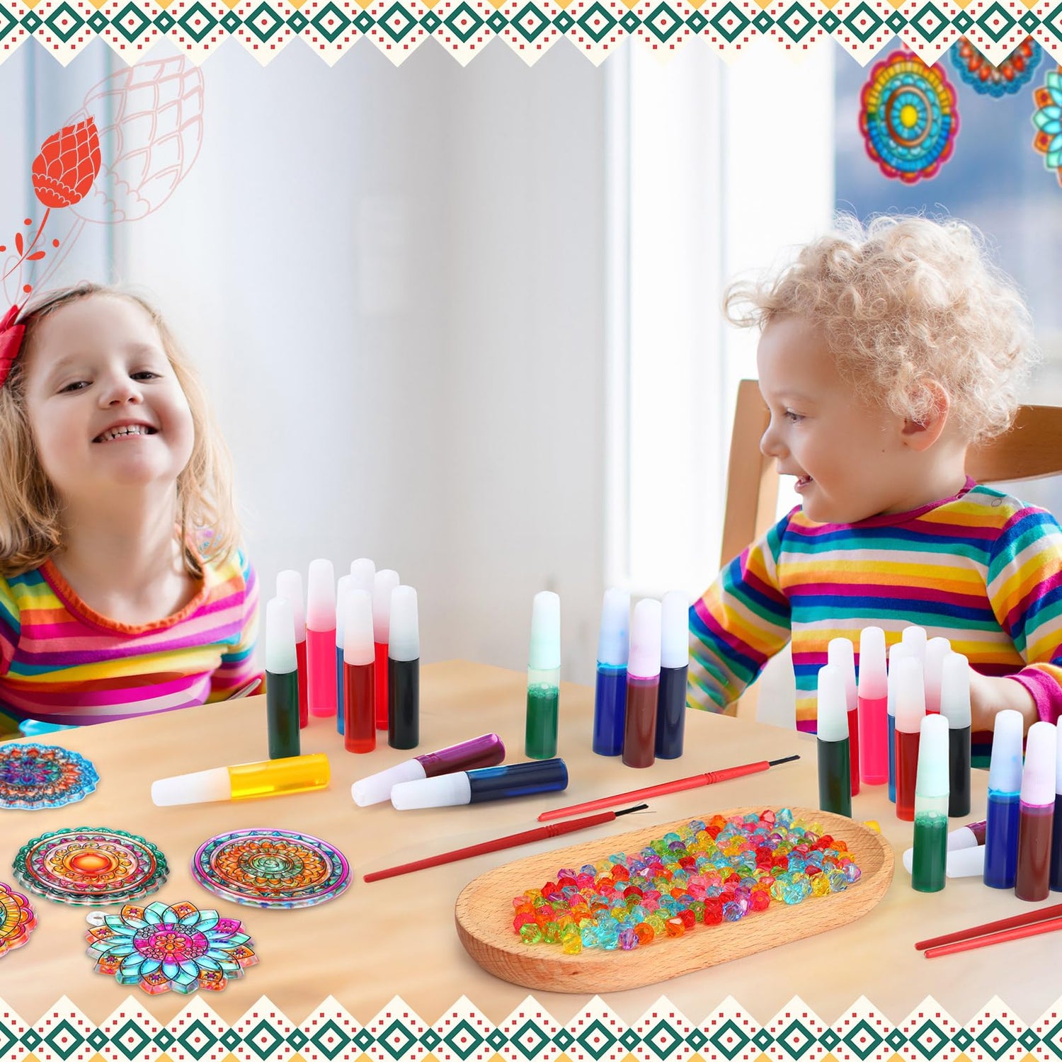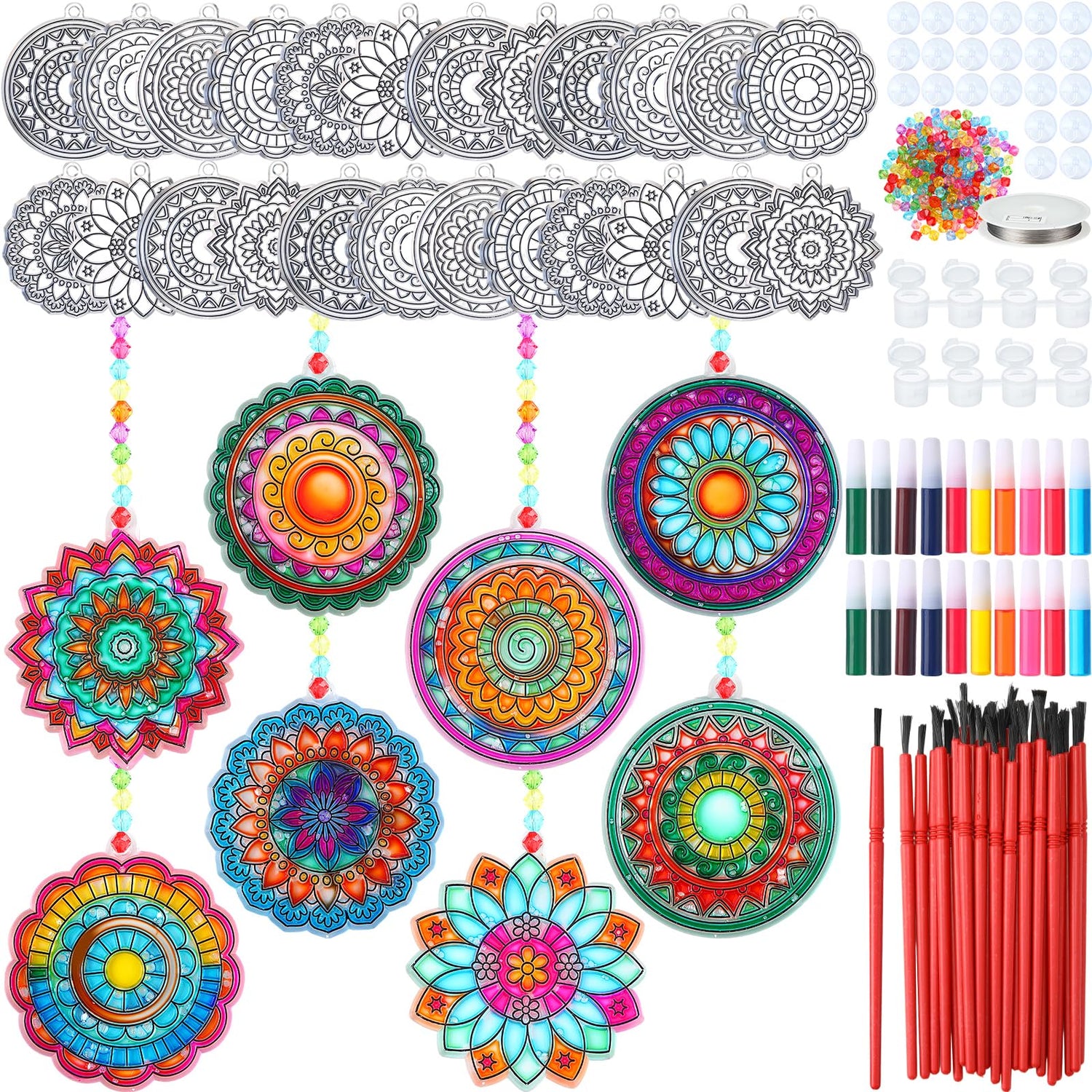 Yousoontic 24 Sets Mandala Suncatchers Kits DIY Window Paint Art Suncatchers Mandala Flower Craft Kits for Classroom Art Craft Summer Sun Catchers for Party Favors