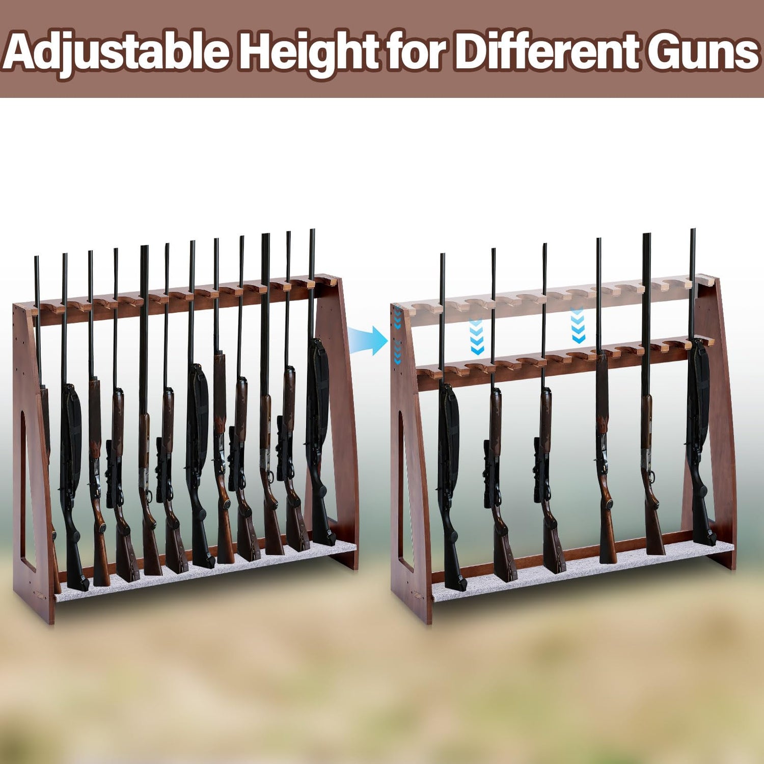 Yousoontic Indoor Gun Racks Freestanding Rifle Racks Gun Display Stand with Soft Padding Safe Heavy Duty Gun Storage for Cabinet Holder Accessories (Walnut,46.9 x 31.1 x 10.6 Inches)