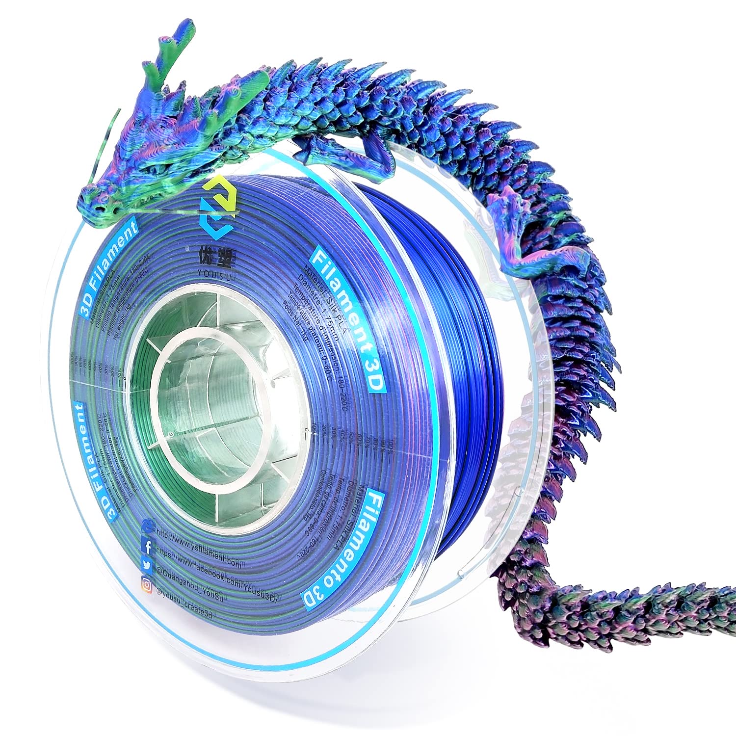 - [Tri-Colors Coextruded Filament] Yousu PLA filament offers three colors in one, Different from normal color change rainbow PLA filament, every inch of this magic 3d filament is made of three colors-Red, Blue, and Yellow. Therefore, you will easily get all colors, even for very small prints. Different prints will present different effects. Enjoy your 3d printing creations.