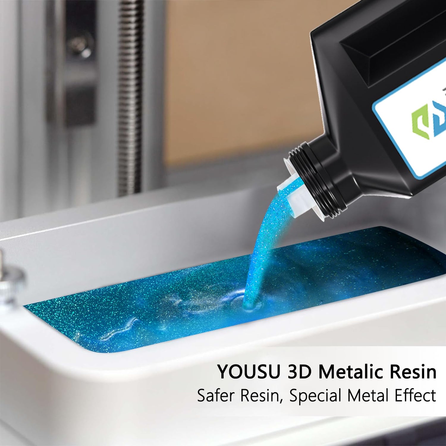 YOUSU 3D Printer Metallic Resin,Fast Curing 3D Metal Printing Resin 1KG, Magical Metallic Effect Photopolymer Resin for LCD DLP 3D Printing (1000g,Metal Blue Zine)