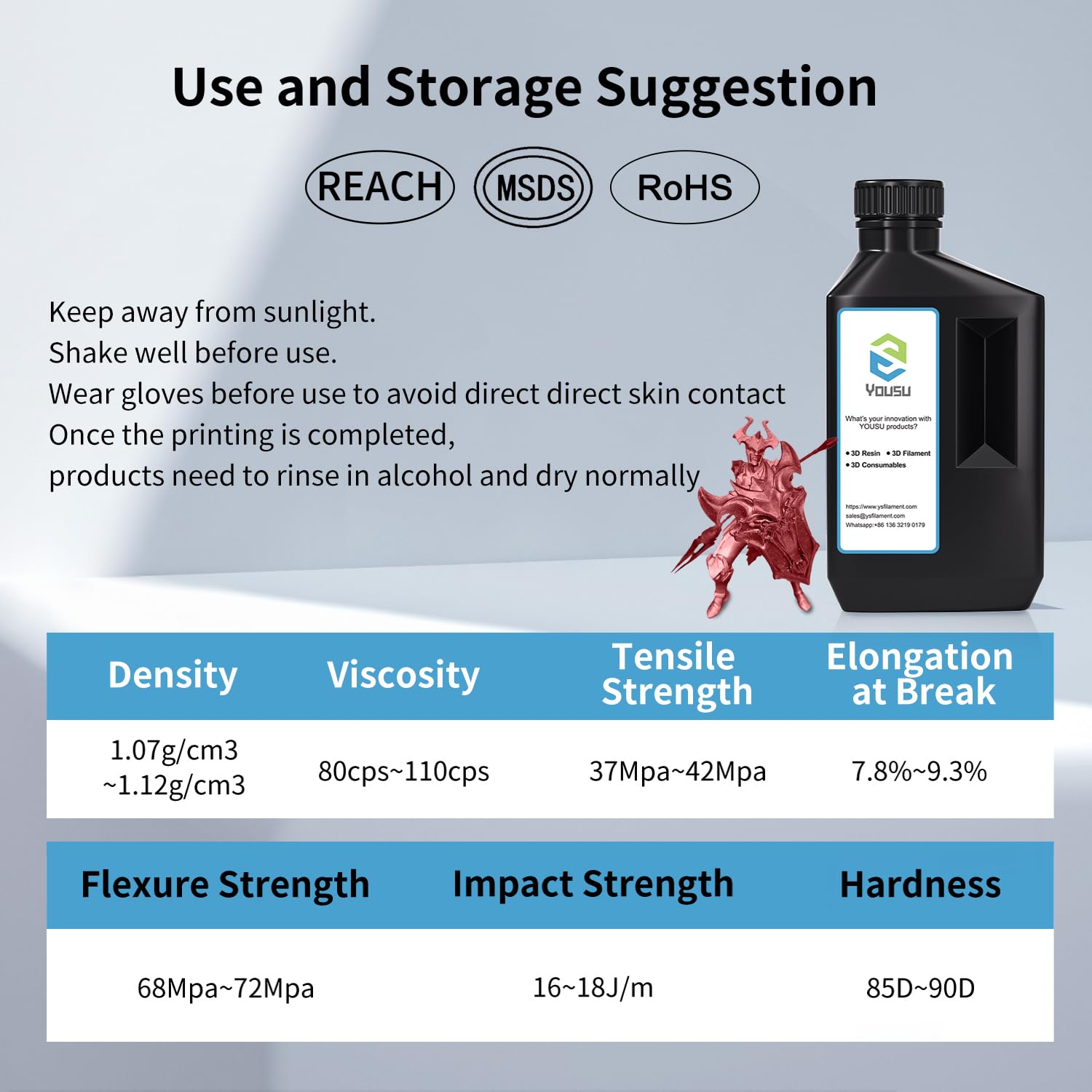 - 【Low Shrinkage & High Precision】YOUSU metallic 3d resin is specially designed to reduce volume shrinkage during 3d printing, ensuring high precision of printed models.