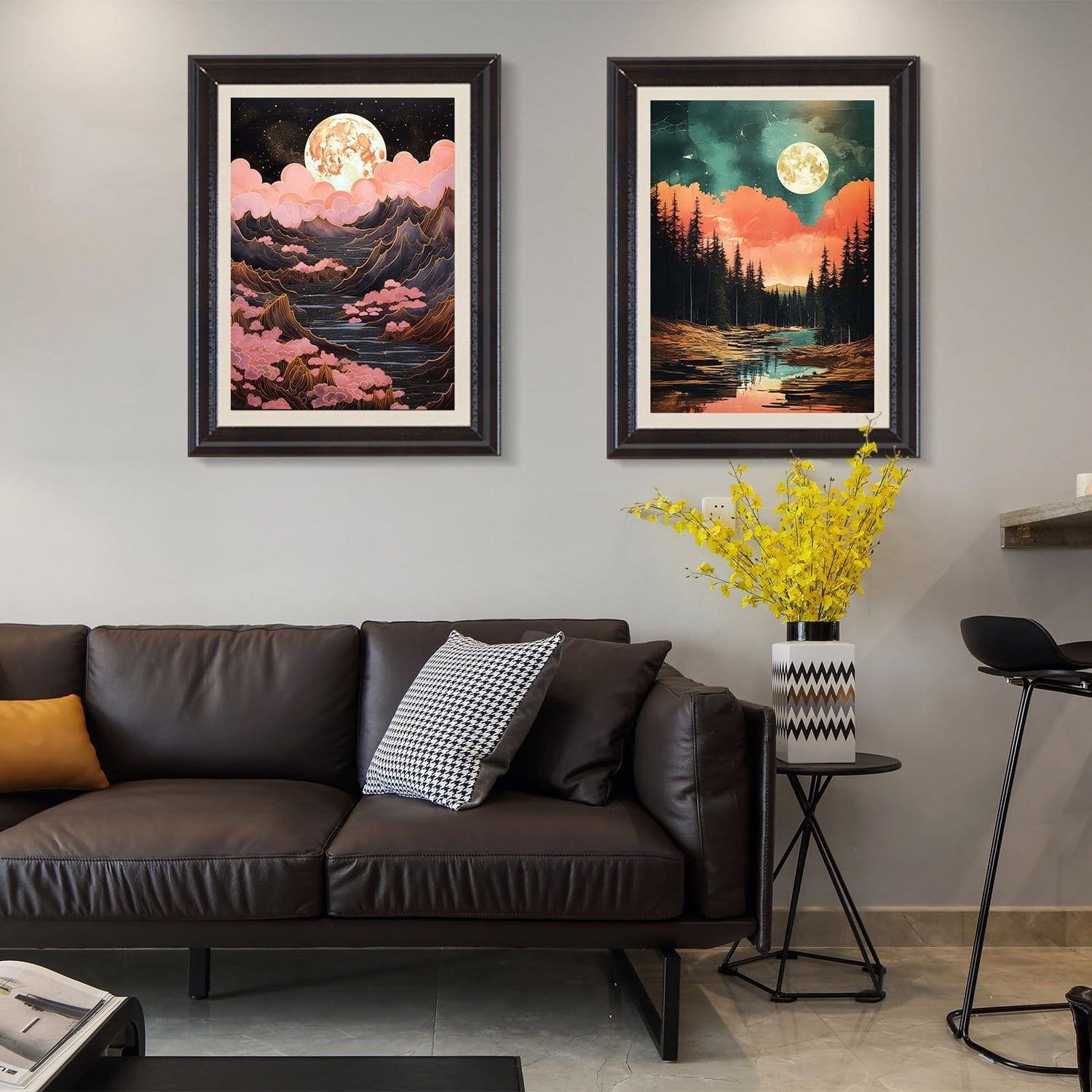 YOYA 2 Pack 5D Diamond Art Painting Kits, Diamond Painting Mountain Kits, Landscape Moon Diamond Art Kits for Adults, Abstract Scenery Paint with Diamonds Gem Art for Home Wall Decor 12 x 16 Inch