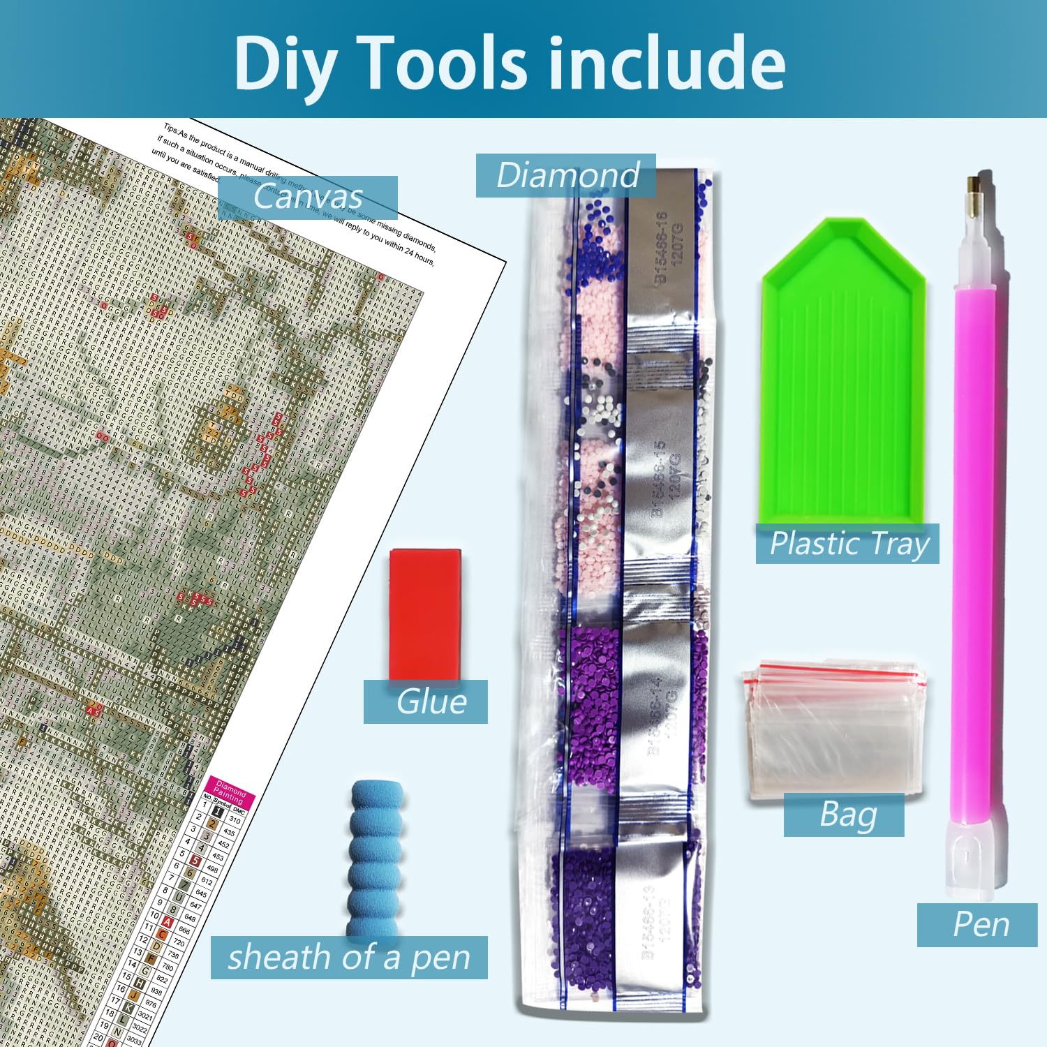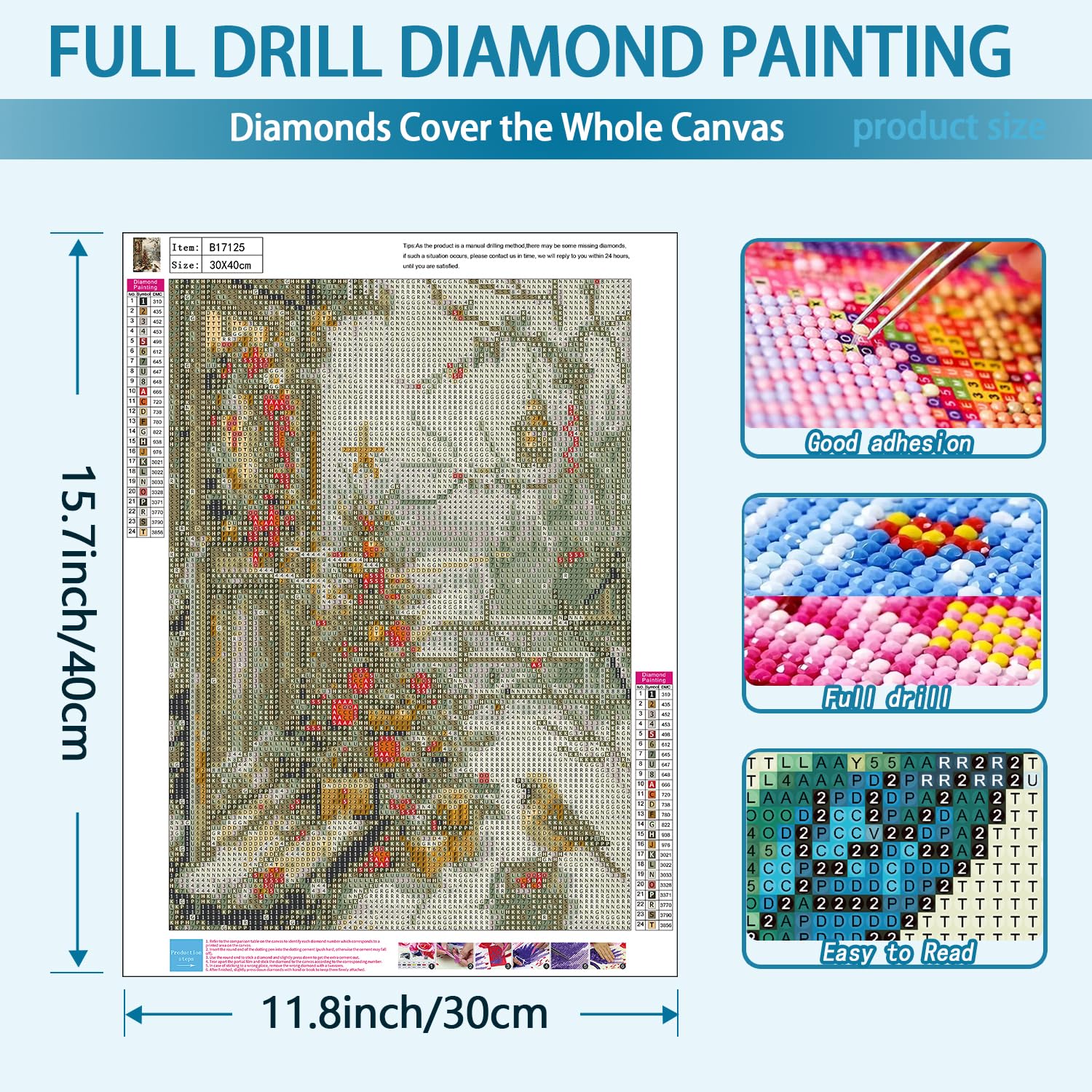 - 【Diamond Art Kits for Adults】Christmas landscape 5d diamond painting kit contains all the tools needed.Includes: 1*HD painting canvas(12X16 inches),1*diamond pen,1*tray for holding diamonds,1*red glue clay (2cm*4cm),1*pen grip,10*plastic bags for putting diamonds,and enough colorful round diamonds.For each diamond art kit we'll provide 30% more diamond beads than needed.so you don’t need to purchase any additional tools.(This winter christmas landscape gem painting kit for adults not include frame).