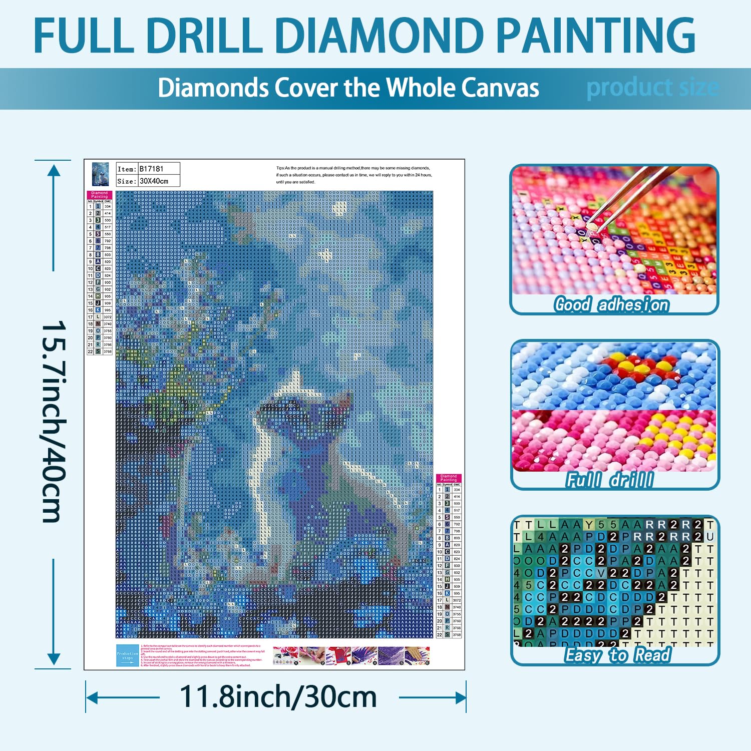 - 【Diamond Art Kits for Adults】Cute cat 5d diamond painting kit contains all the tools needed.Includes: 1*HD painting canvas(12X16 inches),1*diamond pen,1*tray for holding diamonds,1*red glue clay (2cm*4cm),1*pen grip,10*plastic bags for putting diamonds,and enough colorful round diamonds.For each diamond art kit we'll provide 30% more diamond beads than needed.so you don’t need to purchase any additional tools.(This animal flowers gem painting kit for adults not include frame).