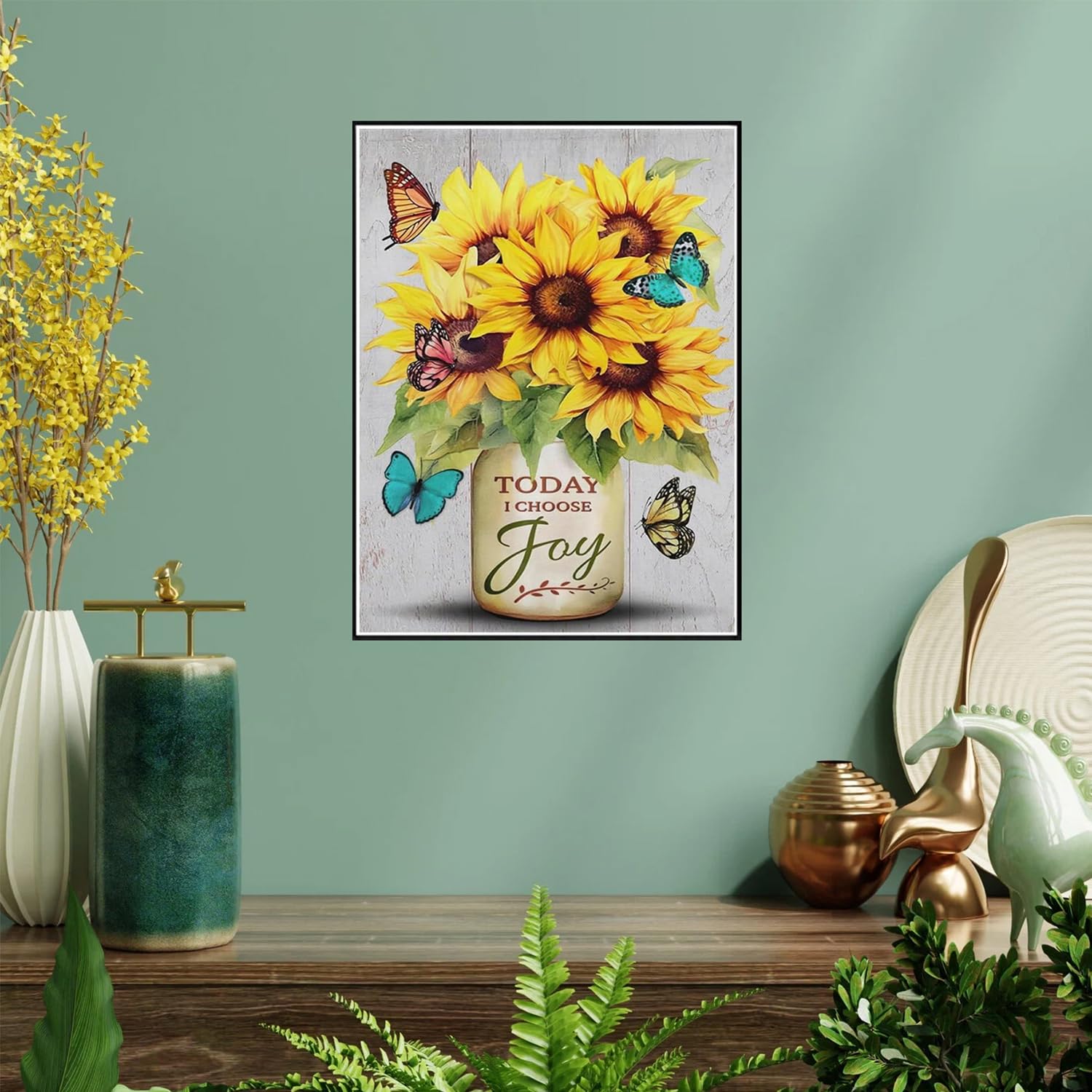 - 【Home Wall Decor】The finished diamond art painting looks like a professional artwork,an excellent decoration for your home.Sunflower & butterfly vase inspirational diamond painting can be decorated in the living room,bedroom,study,office and other occasions,giving people a sense of pleasure.Gem art for adults is also an good choice for friend and family on birthdays,Thanksgiving,Themed party, Fall,Christmas and other holidays.
