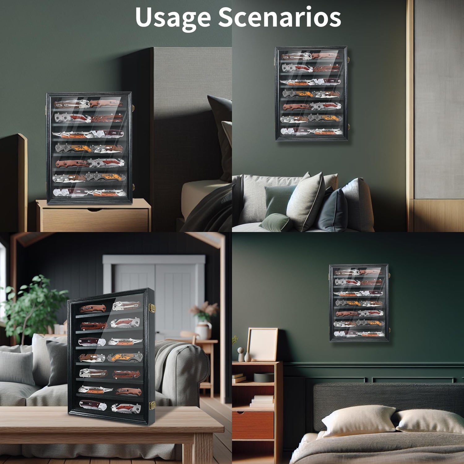 - Good Choice for Enthusiasts - This elegant knife display case is an excellent choice for military personnel, hunters, or collectors. Its practical and durable design will appeal to your family, friends, or colleagues, and we are confident they will love this pocket knife display case
