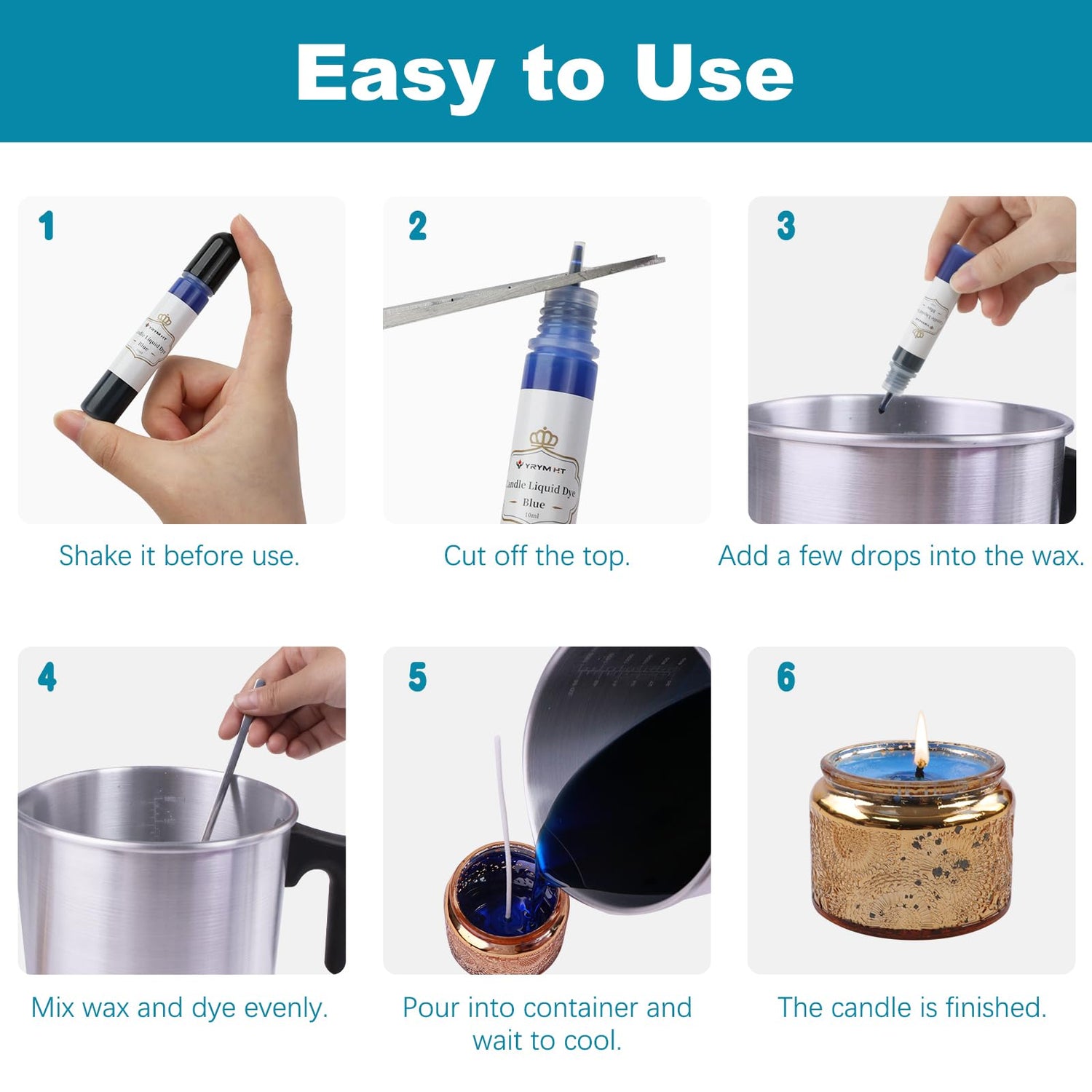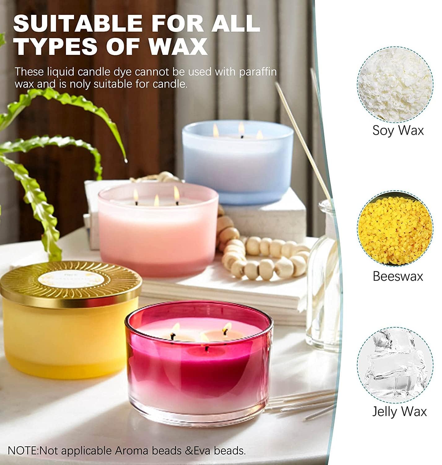 - 【UPDATE 2024】: Our liquid candle dye can be used for paraffin, soy, and beeswax candles, ensuring compatibility with a wide range of materials,Compared with traditional candle dye blocks, this liquid is easier to use because you don’t need to spend extra time waiting for it to melt