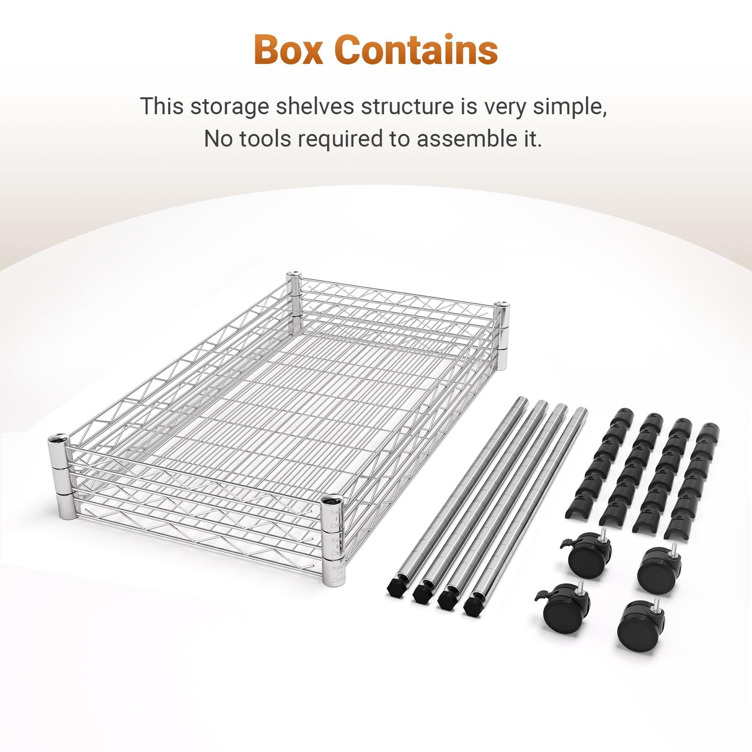 - Adjustable Design with Wheels - Features durable steel construction with adjustable leveling feet and four wheels for mobility. Shelves adjust in 1-inch increments for customizable storage