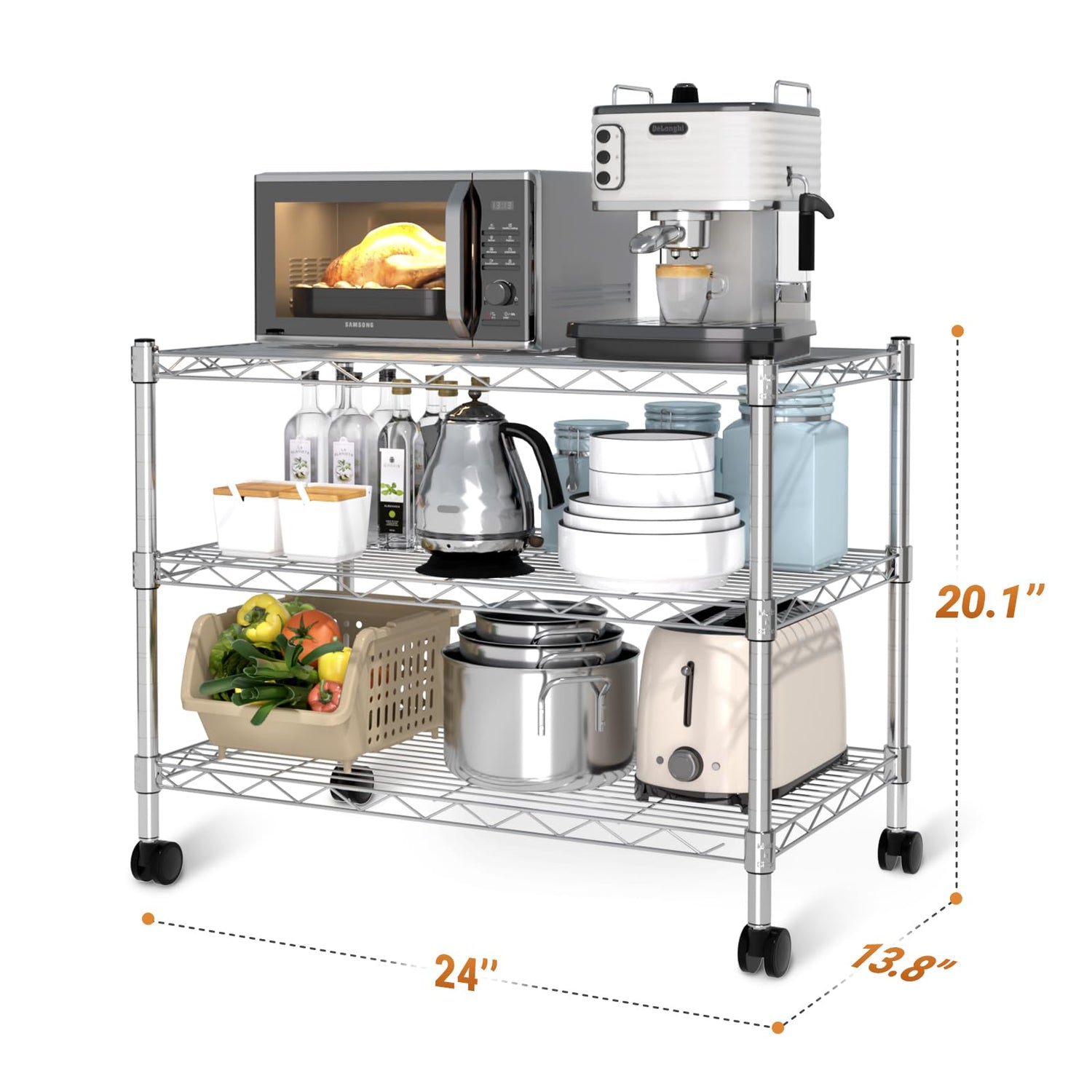 YSSOA 3-Tier Heavy Duty Storage Shelves 750Lb Capacity, 24.02" D x 13.78" W x 21.97" H Shelving Unit for Pantry, Garage, Laundry and Kitchen, Chrome