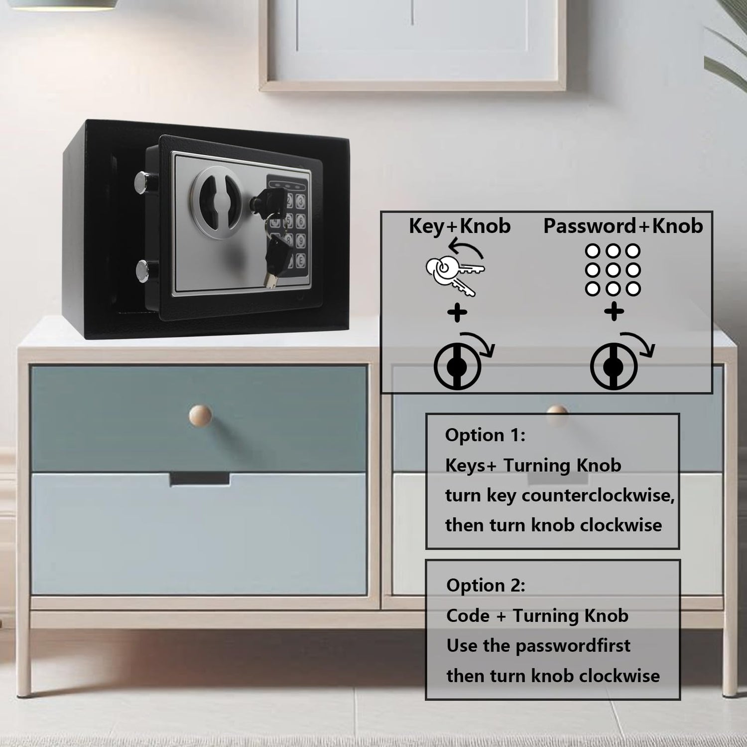 Yuanshikj Electronic Deluxe Digital Security Safe Box Key Keypad Lock Home Office Hotel Business Jewelry Gun Cash Use Storage money (Black 1)