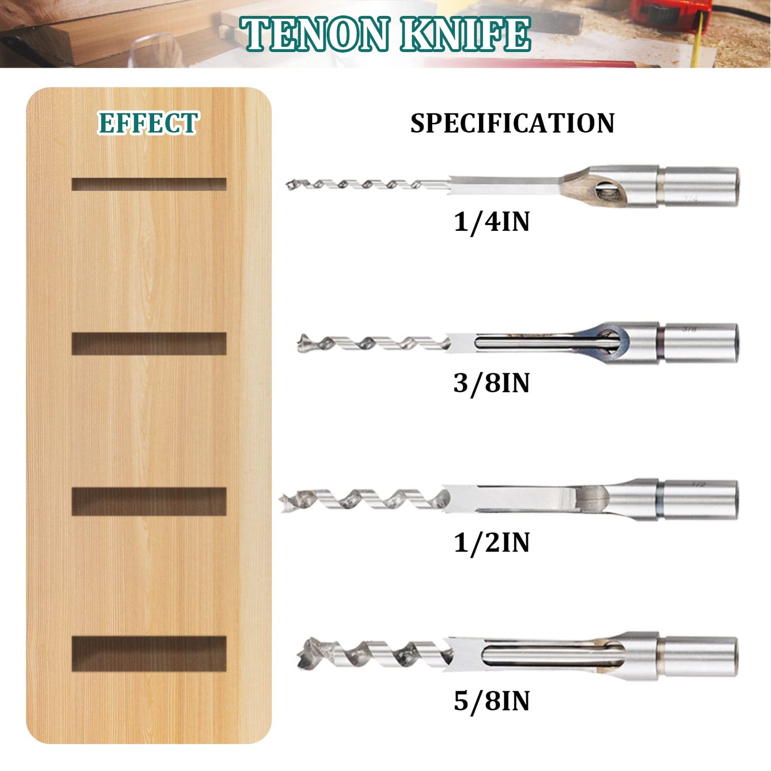 - 5.【Note】: This product is only the accessory shown in the picture, it needs to be used with a square hole drilling machine, and cannot be used on an electric drill! It is mainly used for drilling square slots in professional wood, but not for hard materials such as metal, glass, and gypsum board.