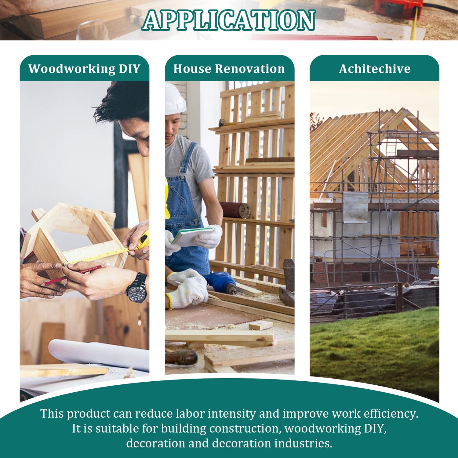 - 4.【Application】: This product can reduce labor intensity and improve work efficiency. It is suitable for building construction, woodworking DIY, decoration and decoration industries. Suggested materials: compressed board, plastic, density board, sandalwood, pine, ash, pine and other materials with low hardness.