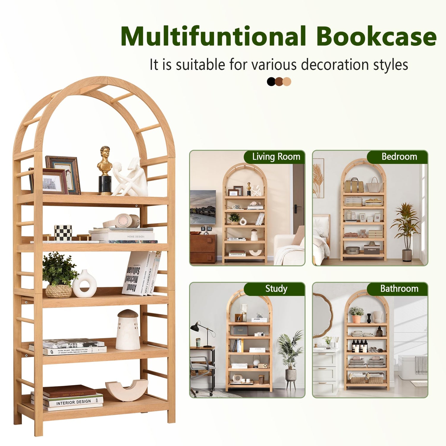 - 【 Style and Appearance 】Modern arched design of the display bookcase not only has a strong fashionable classic style, but also appears grand and beautiful. No matter where it is placed, it can perfectly integrate different styles of home decoration, and add modern and classic elements to your decoration style, making your home easy to have a different sense of beauty and warmth