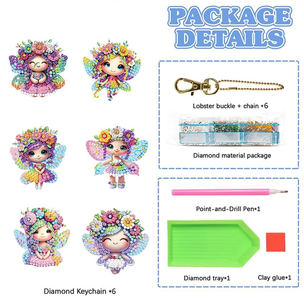 YUE ZHE 6 PCS Flower Fairy Diamond Art Kits for Adults Double Sided Diamond Art Keychains Animal DIY 5D Painting Keychains Kits for Adults Beginners DIY Crafts