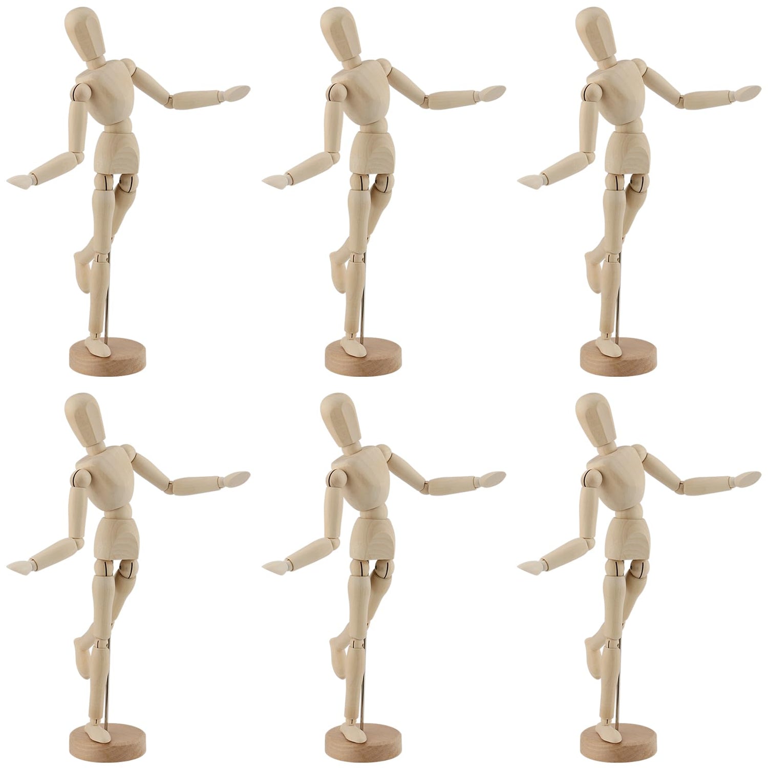 YUENPUN 6 PCS 5.5 Inch Poseable Wood Mannequin Doll, Wood Drawing Mannequin, Wood Art Mannequin Model with Base, Articulated Wood Figure Human Model for Decor, Painting, Gift