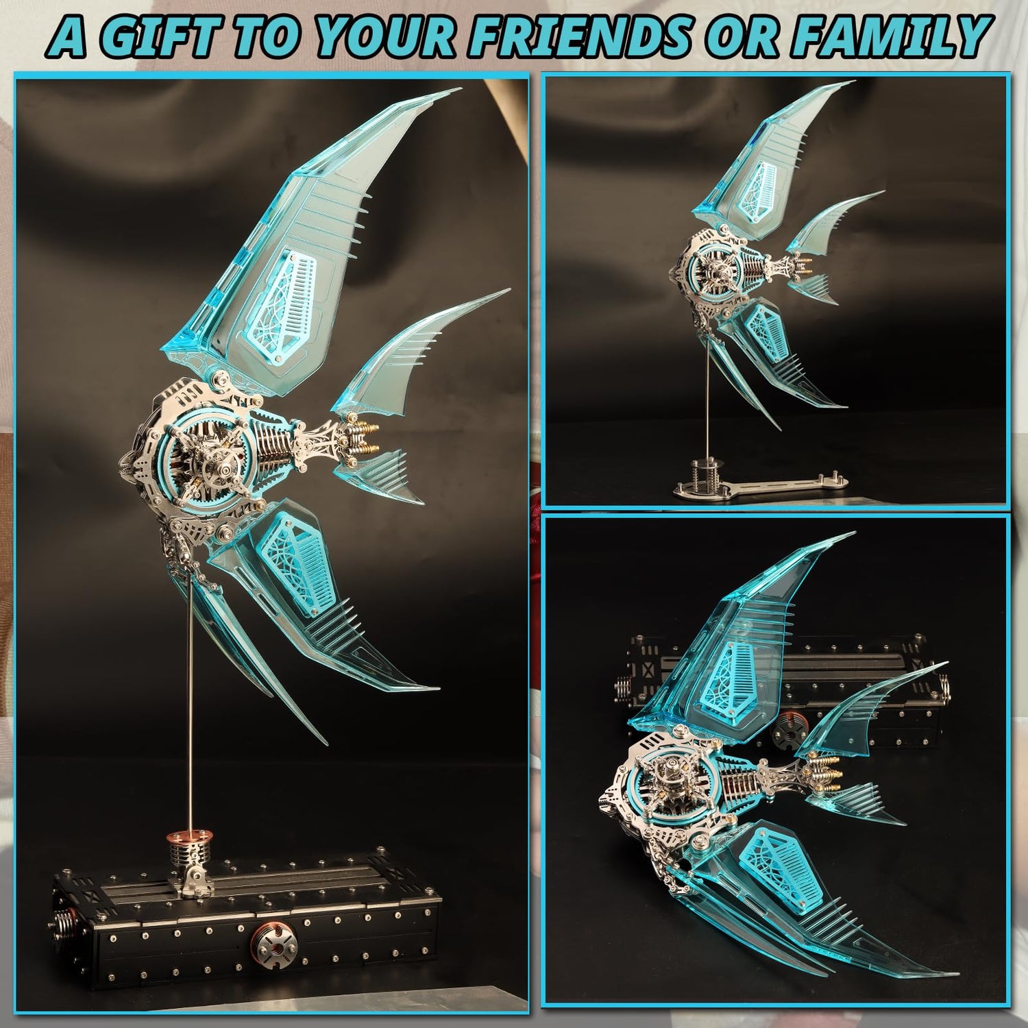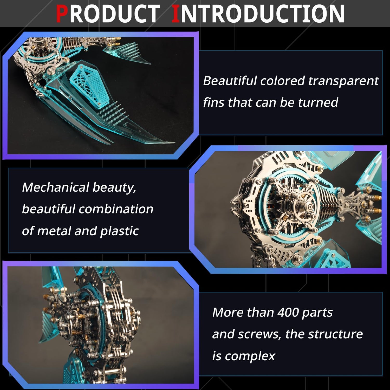 - Size: Once assembled, the size of the model is 15.03(l) x 9.56(w) inches, making it a great desk decoration for your office, living room.The colorful transparent fins can be turned and can pose beautifully.